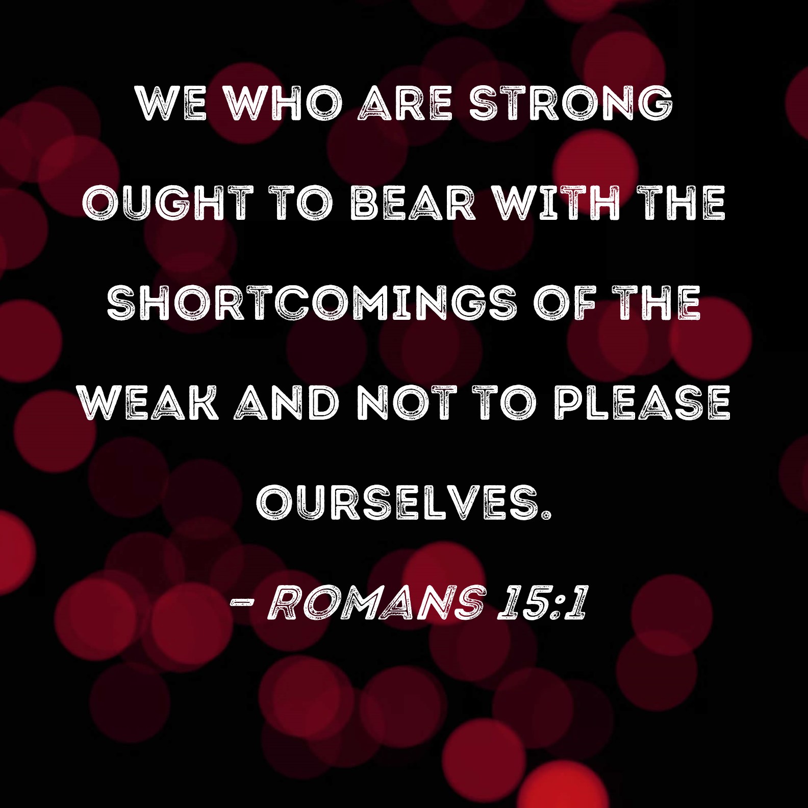 Romans 15:1 We who are strong ought to bear with the shortcomings of the weak and not to please ourselves.