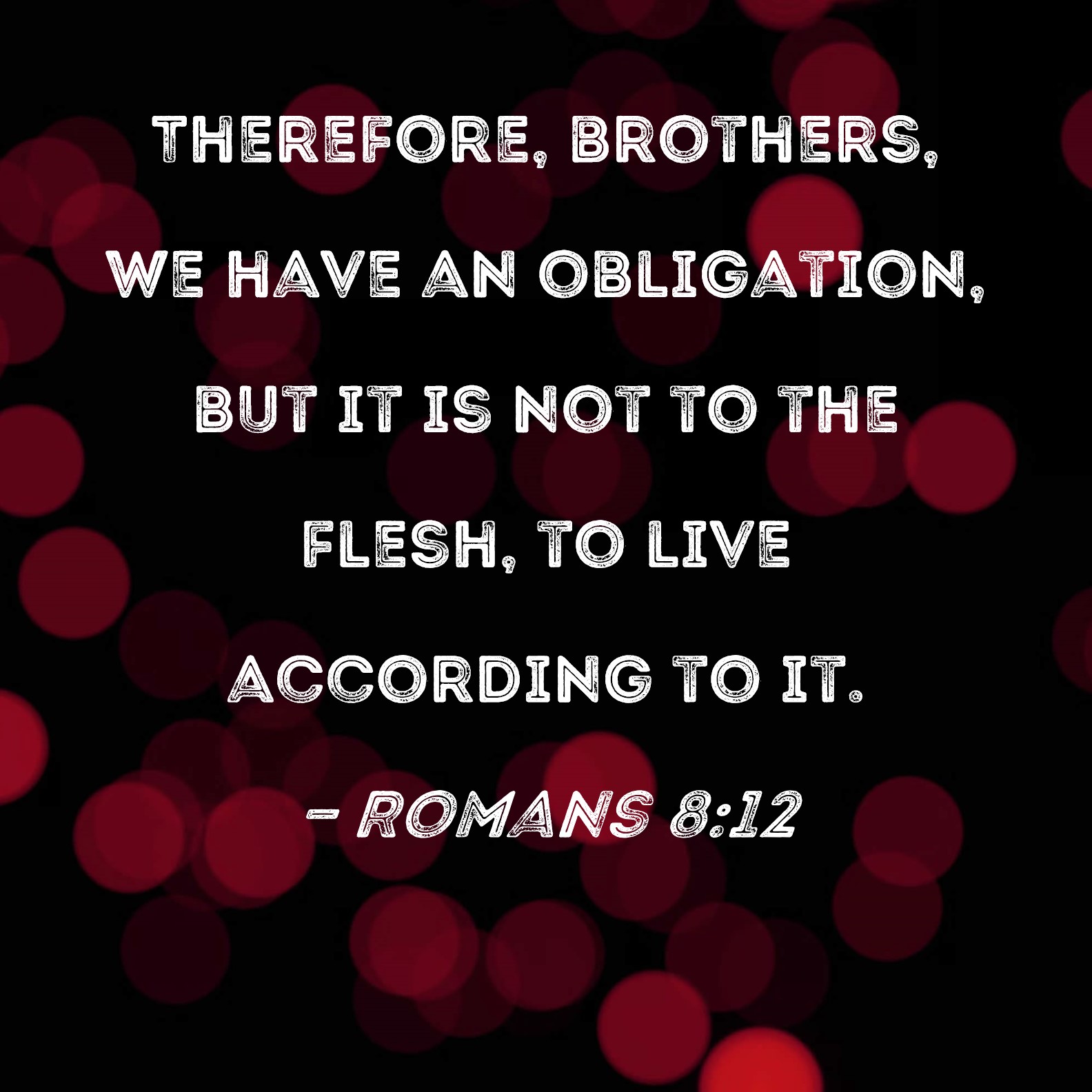 Romans 8:12 Therefore, brothers, we have an obligation, but it is not to the flesh, to live according to it.