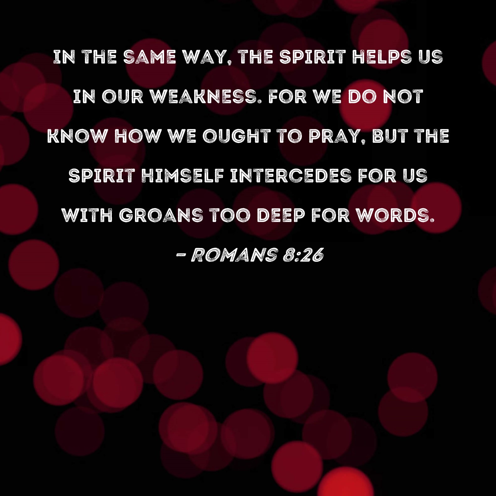 Romans 8:26 In the same way, the Spirit helps us in our weakness. For we do not know how we ought to pray, but the Spirit Himself intercedes for us with groans too deep for words.
