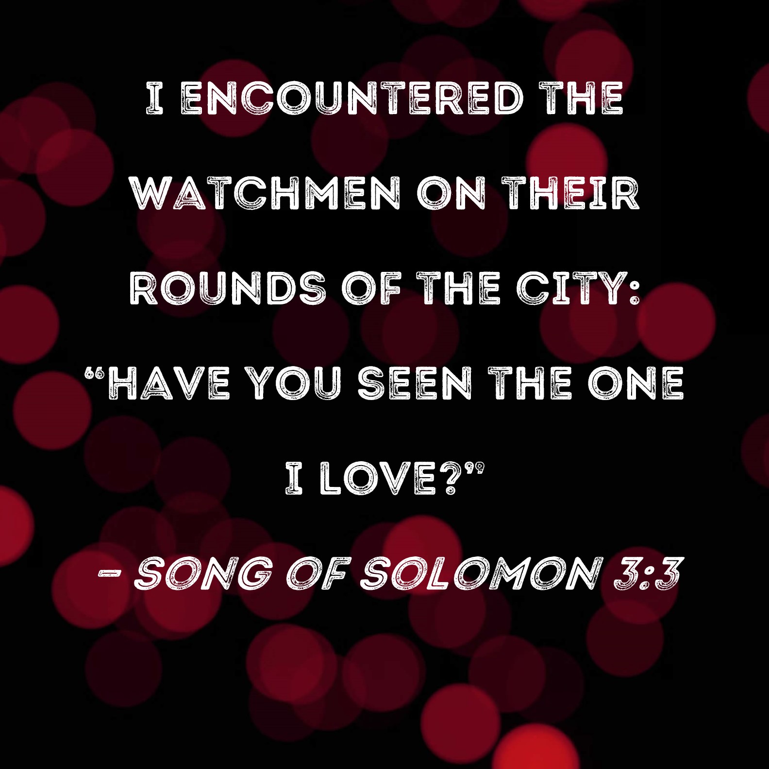 Song of Solomon 3:3 I encountered the watchmen on their rounds of the city: "Have you seen the one I love?"