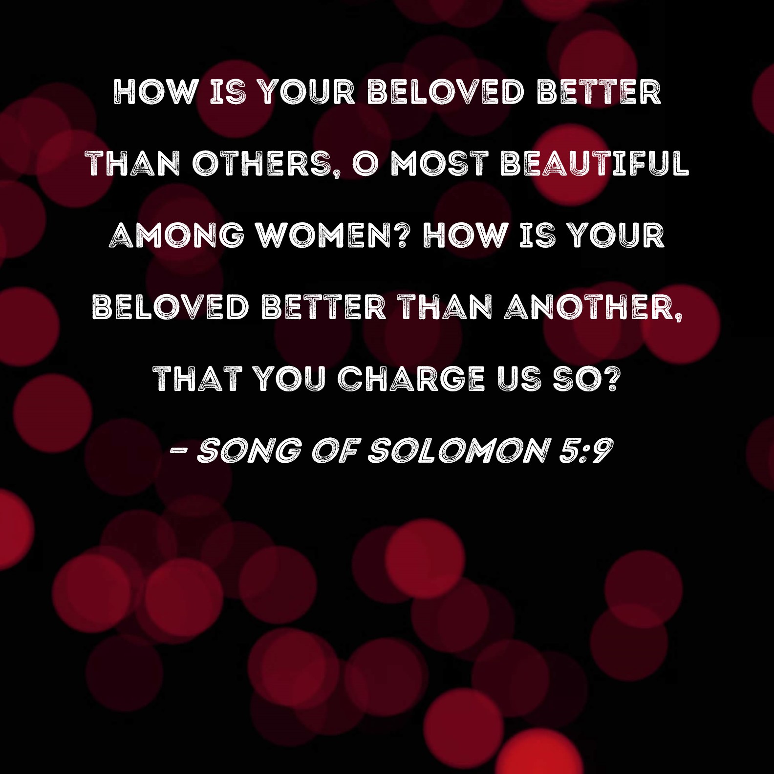 Song of Solomon 5:9 How is your beloved better than others, O most beautiful among women? How is your beloved better than another, that you charge us so?