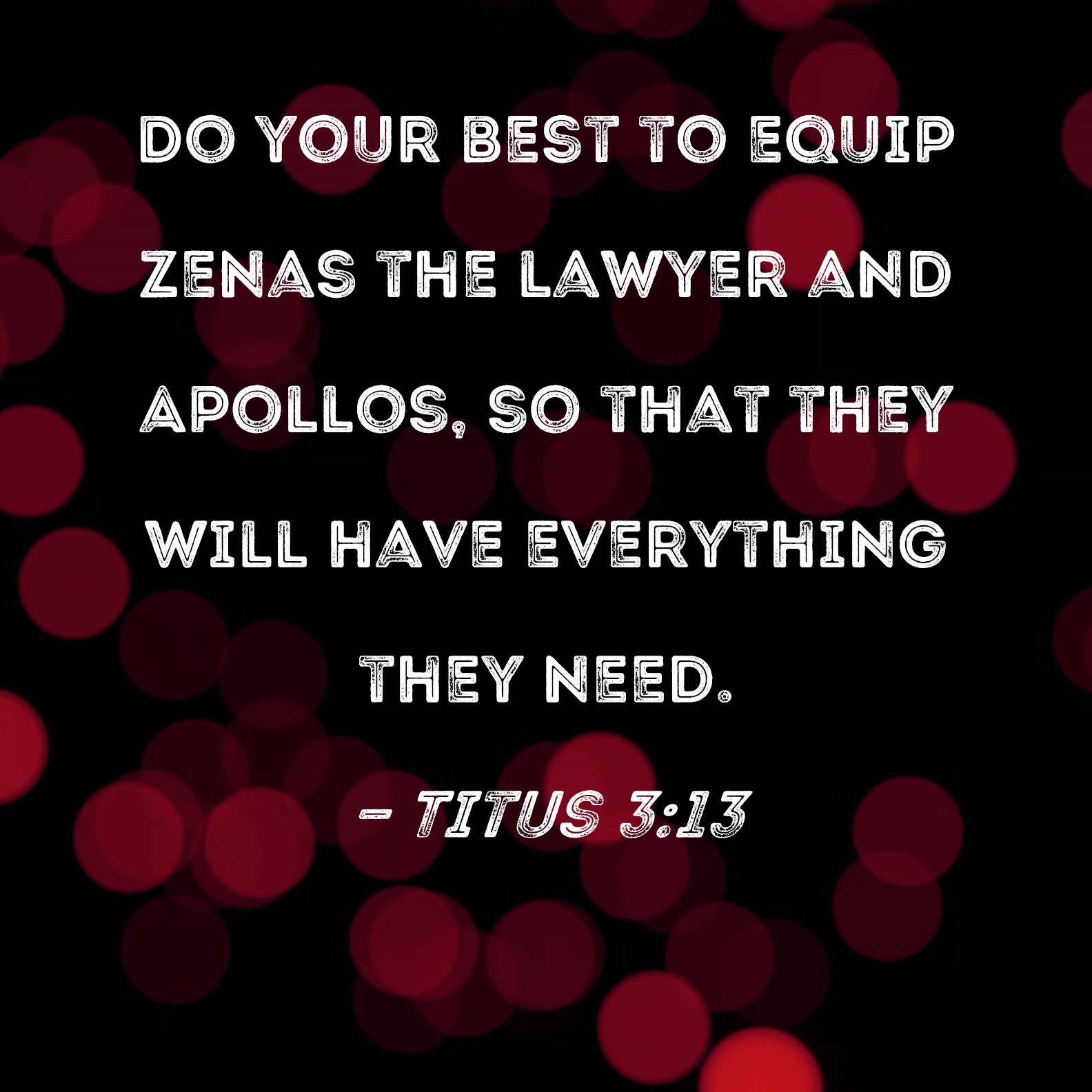 Titus 3:13 Do your best to equip Zenas the lawyer and Apollos, so that they will have everything they need.