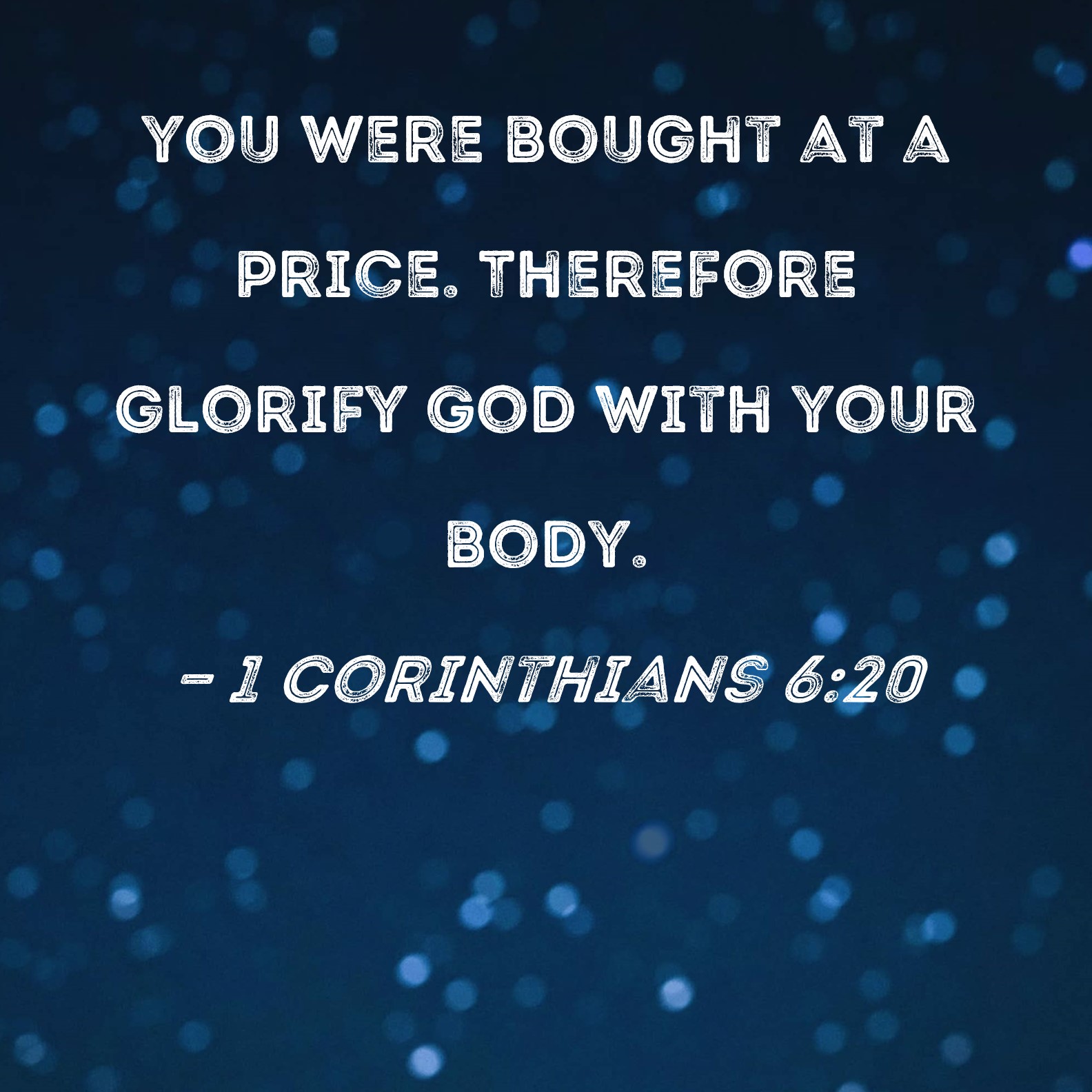 1 Corinthians 6:20 you were bought at a price. Therefore glorify God with your body.