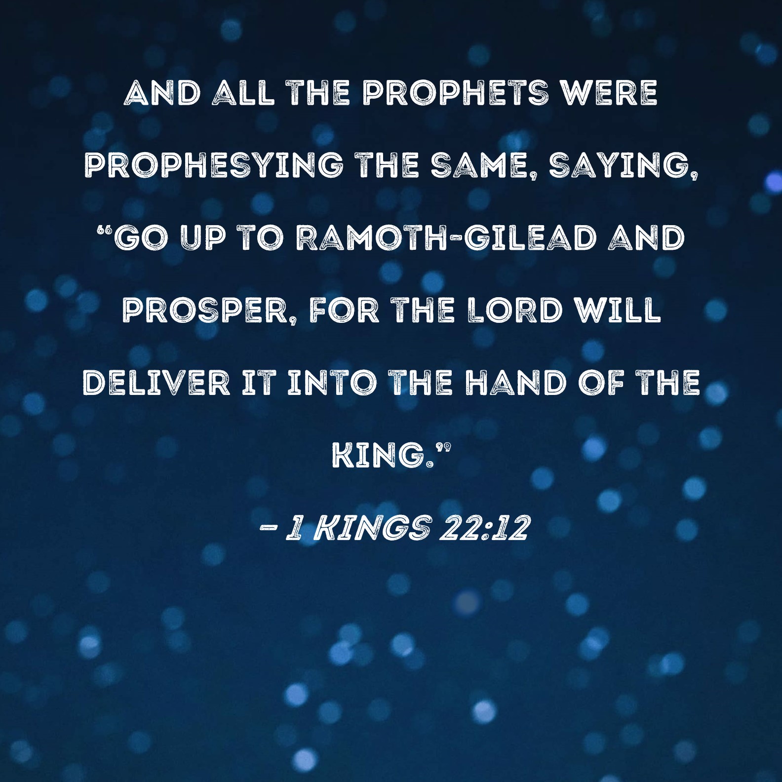 1 Kings 22:12 And all the prophets were prophesying the same, saying, "Go up to Ramoth-gilead and prosper, for the LORD will deliver it into the hand of the king."