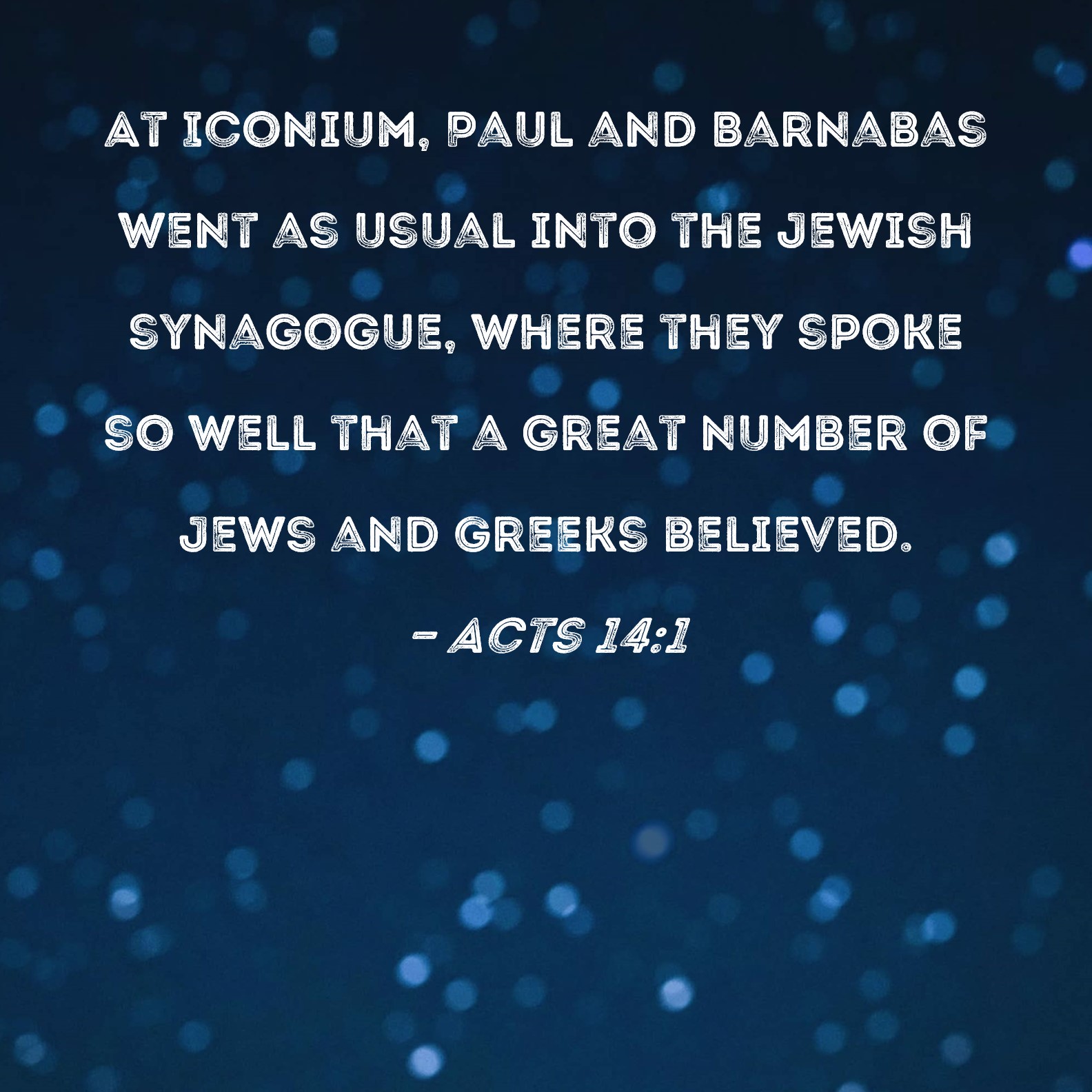 Acts 14:1 At Iconium, Paul and Barnabas went as usual into the Jewish synagogue, where they spoke so well that a great number of Jews and Greeks believed.