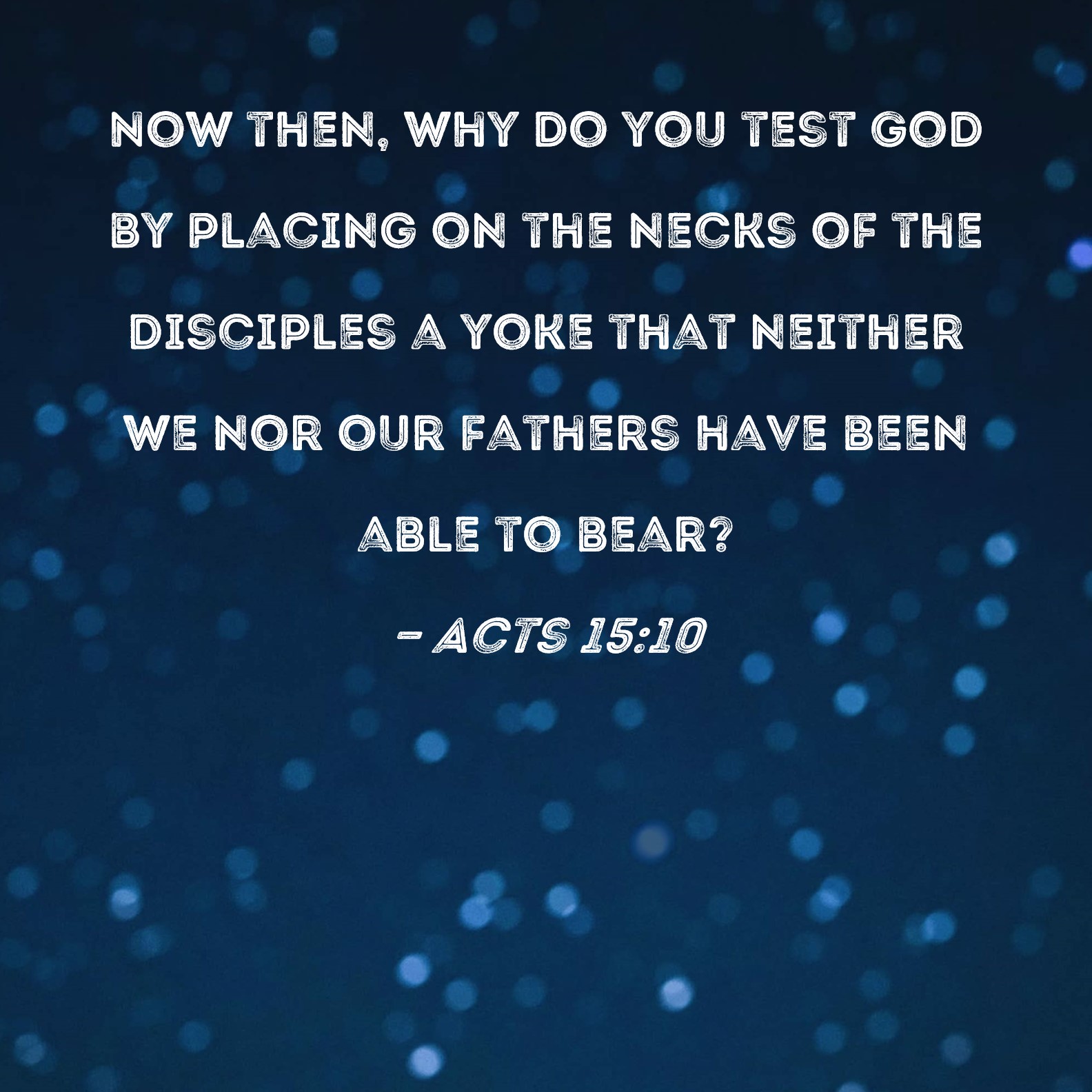 Acts 15:10 Now then, why do you test God by placing on the necks of the disciples a yoke that neither we nor our fathers have been able to bear?