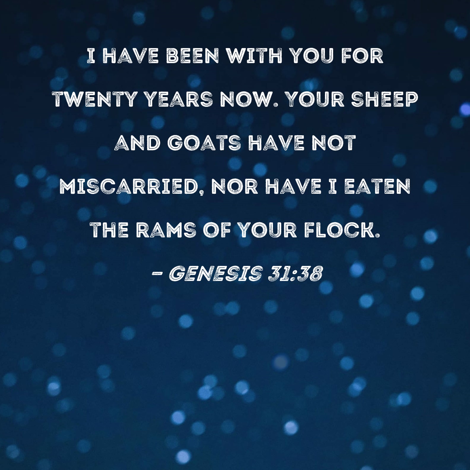 Genesis 31:38 I have been with you for twenty years now. Your sheep and goats have not miscarried, nor have I eaten the rams of your flock.