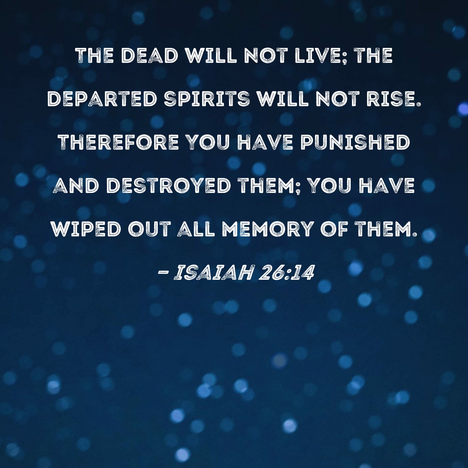 Isaiah 26:14 The dead will not live; the departed spirits will not rise. Therefore You have punished and destroyed them; You have wiped out all memory of them.