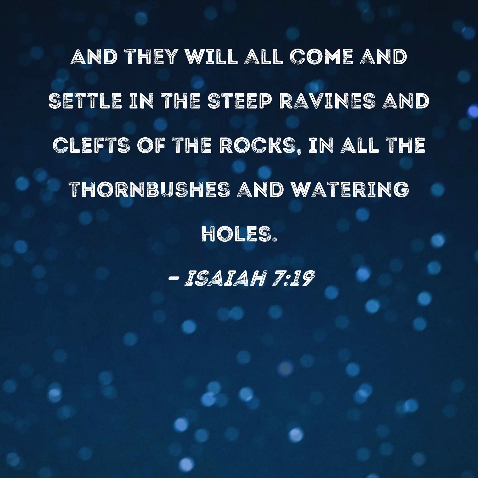 Isaiah 7:19 And they will all come and settle in the steep ravines and clefts of the rocks, in all the thornbushes and watering holes.