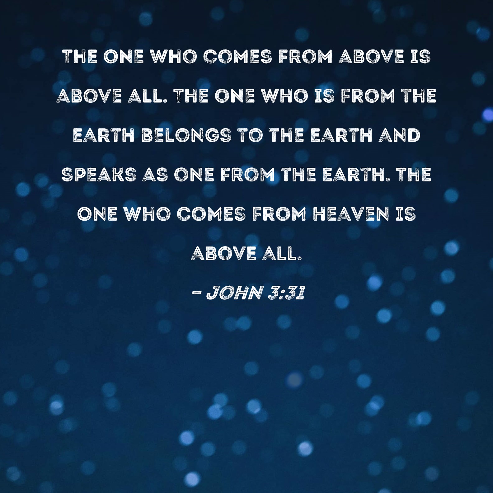 John 3:31 The One who comes from above is above all. The one who is from the earth belongs to the earth and speaks as one from the earth. The One who comes from heaven is above all.