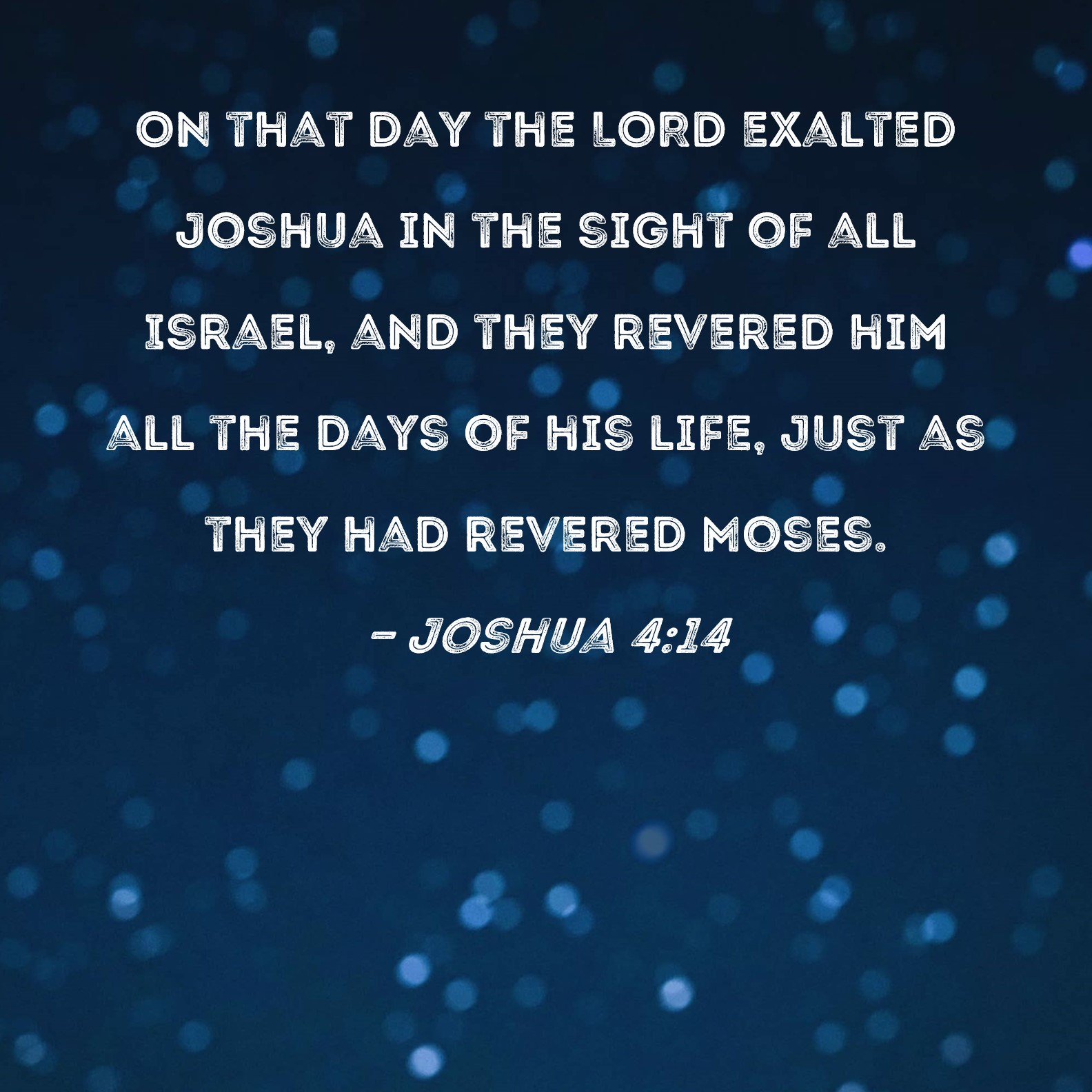 Joshua 4:14 On that day the LORD exalted Joshua in the sight of all Israel, and they revered him all the days of his life, just as they had revered Moses.