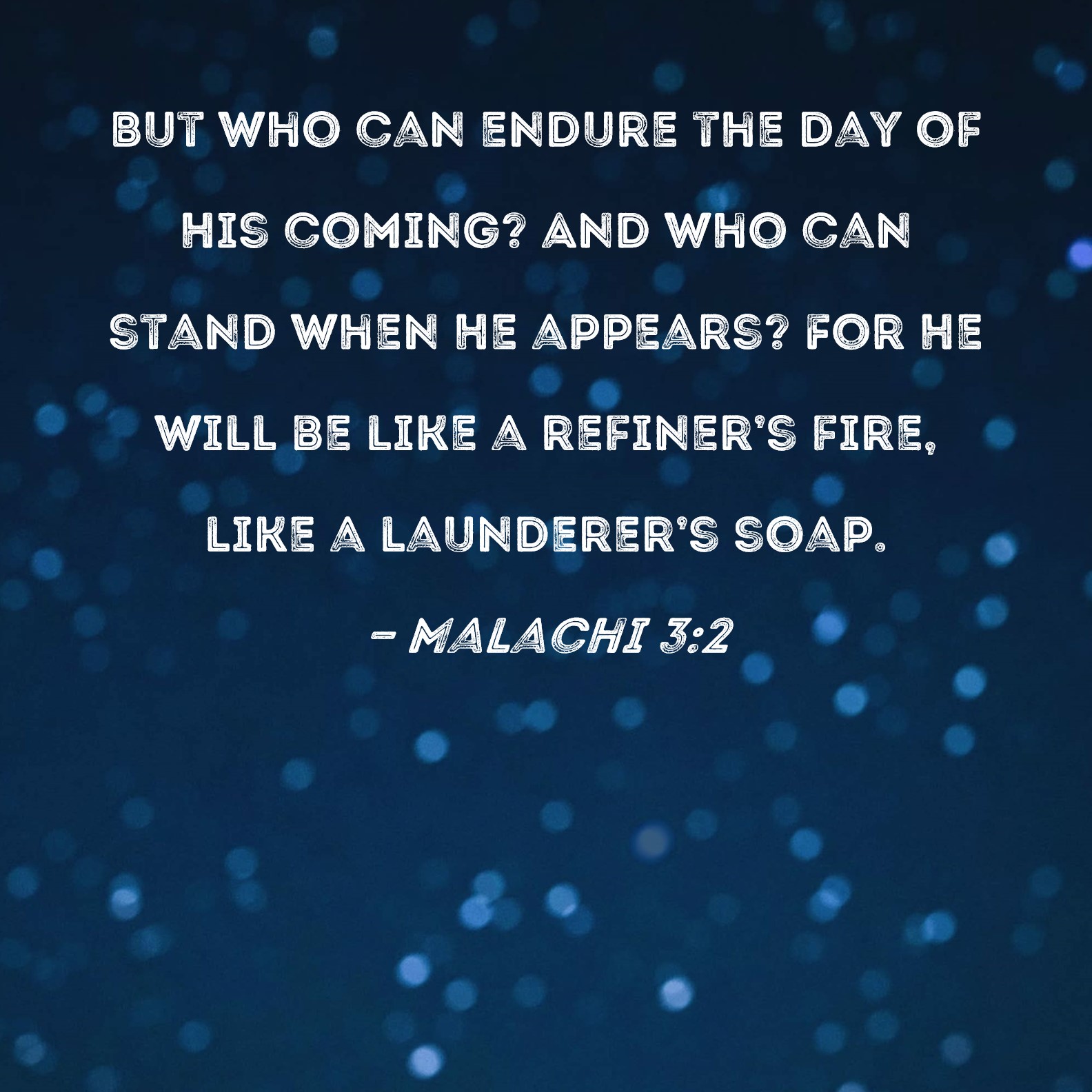 Malachi 3:2 But who can endure the day of His coming? And who can stand when He appears? For He will be like a refiner's fire, like a launderer's soap.