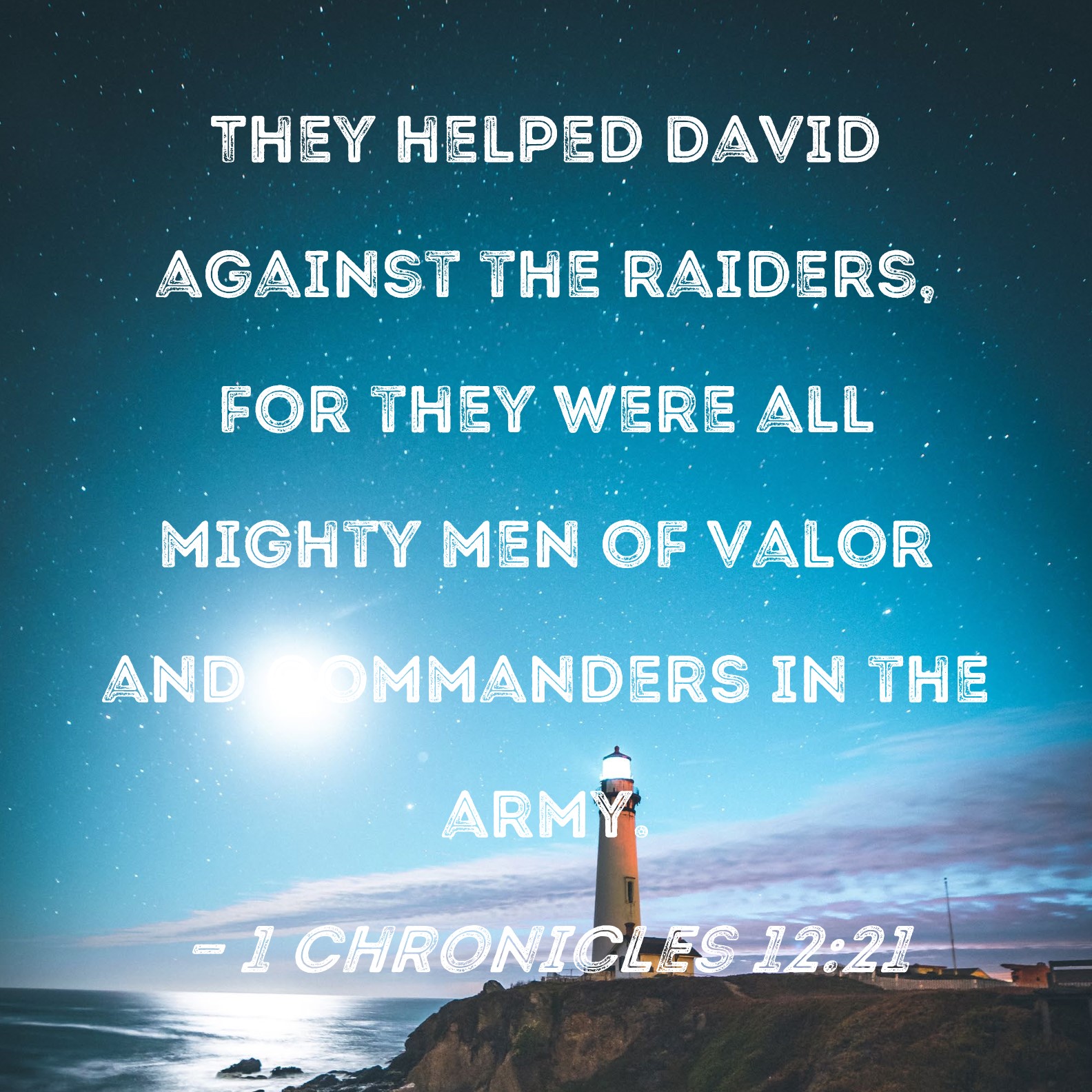 1 Chronicles 12:21 They helped David against the raiders, for they were all mighty men of valor and commanders in the army.