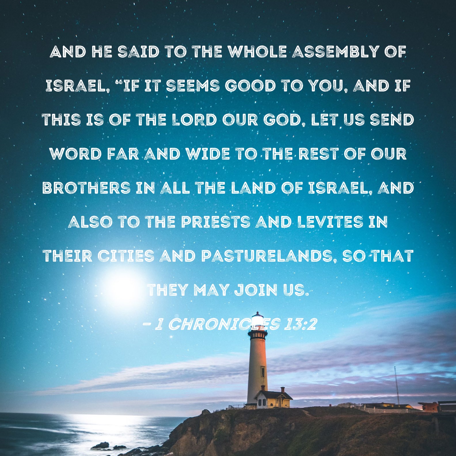1 Chronicles 13:2 And he said to the whole assembly of Israel, "If it seems good to you, and if this is of the LORD our God, let us send word far and wide to the rest of our brothers in all the land of Israel, and also to the priests and Levites in their cities and pasturelands, so that they may join us.