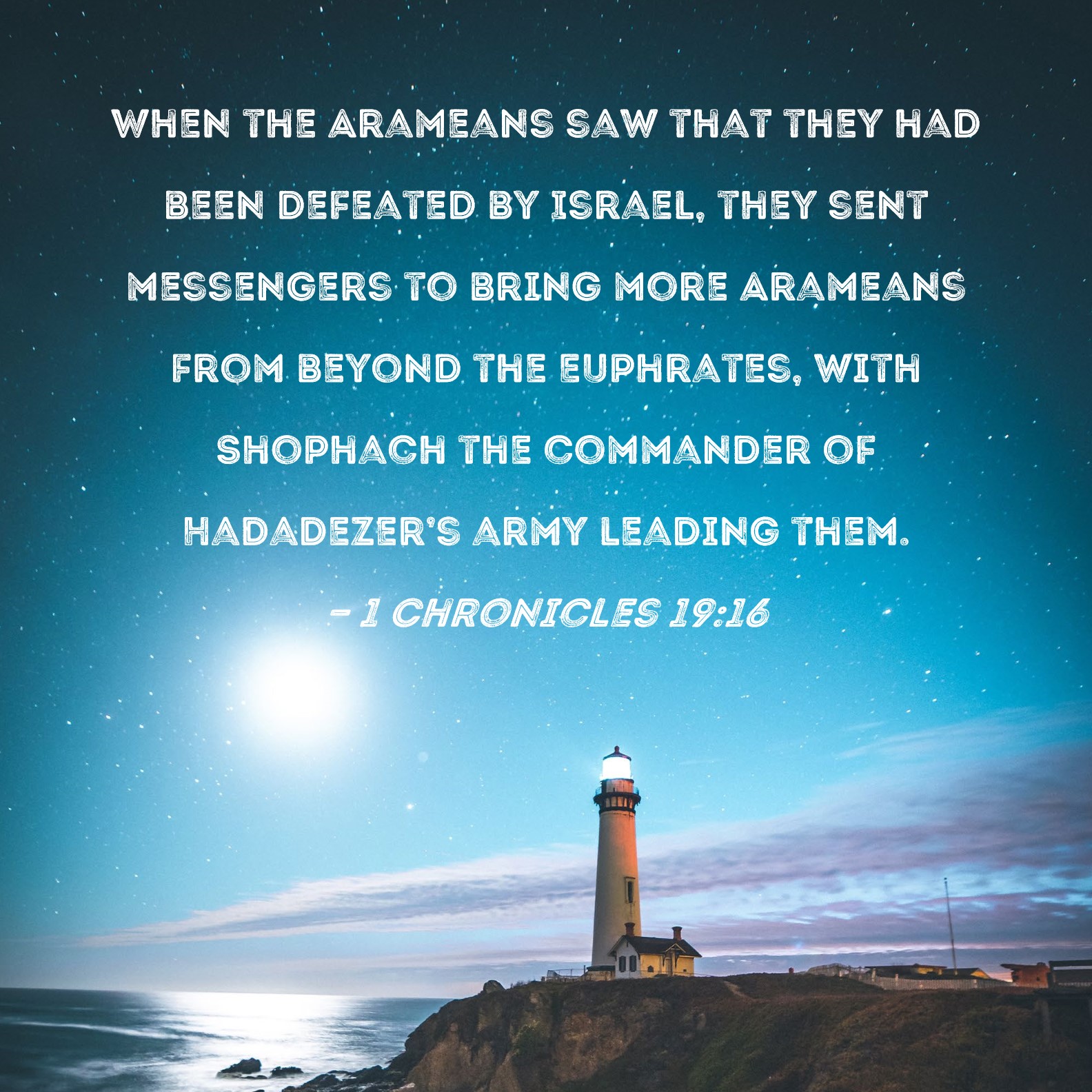 1 Chronicles 19:16 When the Arameans saw that they had been defeated by Israel, they sent messengers to bring more Arameans from beyond the Euphrates, with Shophach the commander of Hadadezer's army leading them.