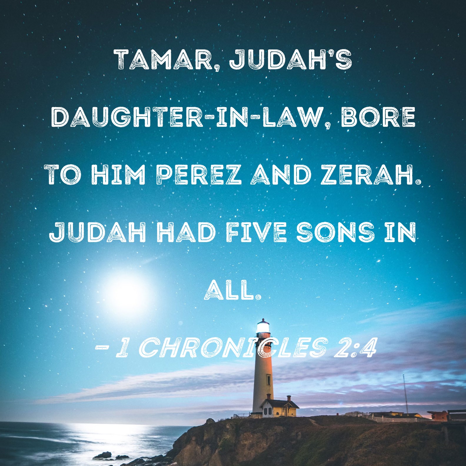 1 Chronicles 2:4 Tamar, Judah's daughter-in-law, bore to him Perez and Zerah. Judah had five sons in all.