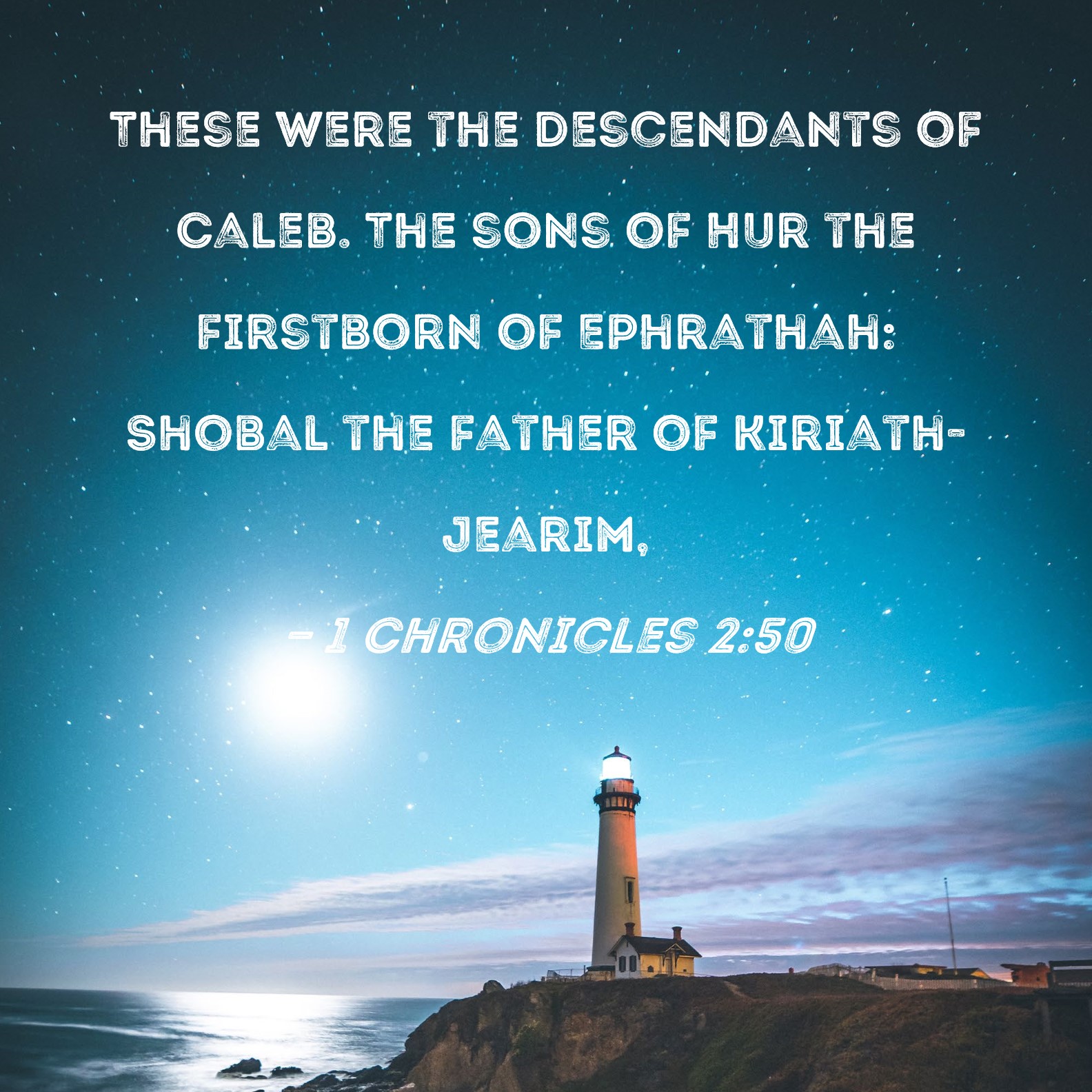 1 Chronicles 2:50 These were the descendants of Caleb. The sons of Hur the firstborn of Ephrathah: Shobal the father of Kiriath-jearim,