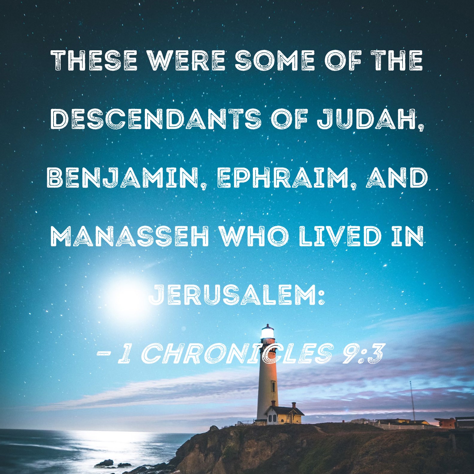 1 Chronicles 9:3 These were some of the descendants of Judah, Benjamin, Ephraim, and Manasseh who lived in Jerusalem: