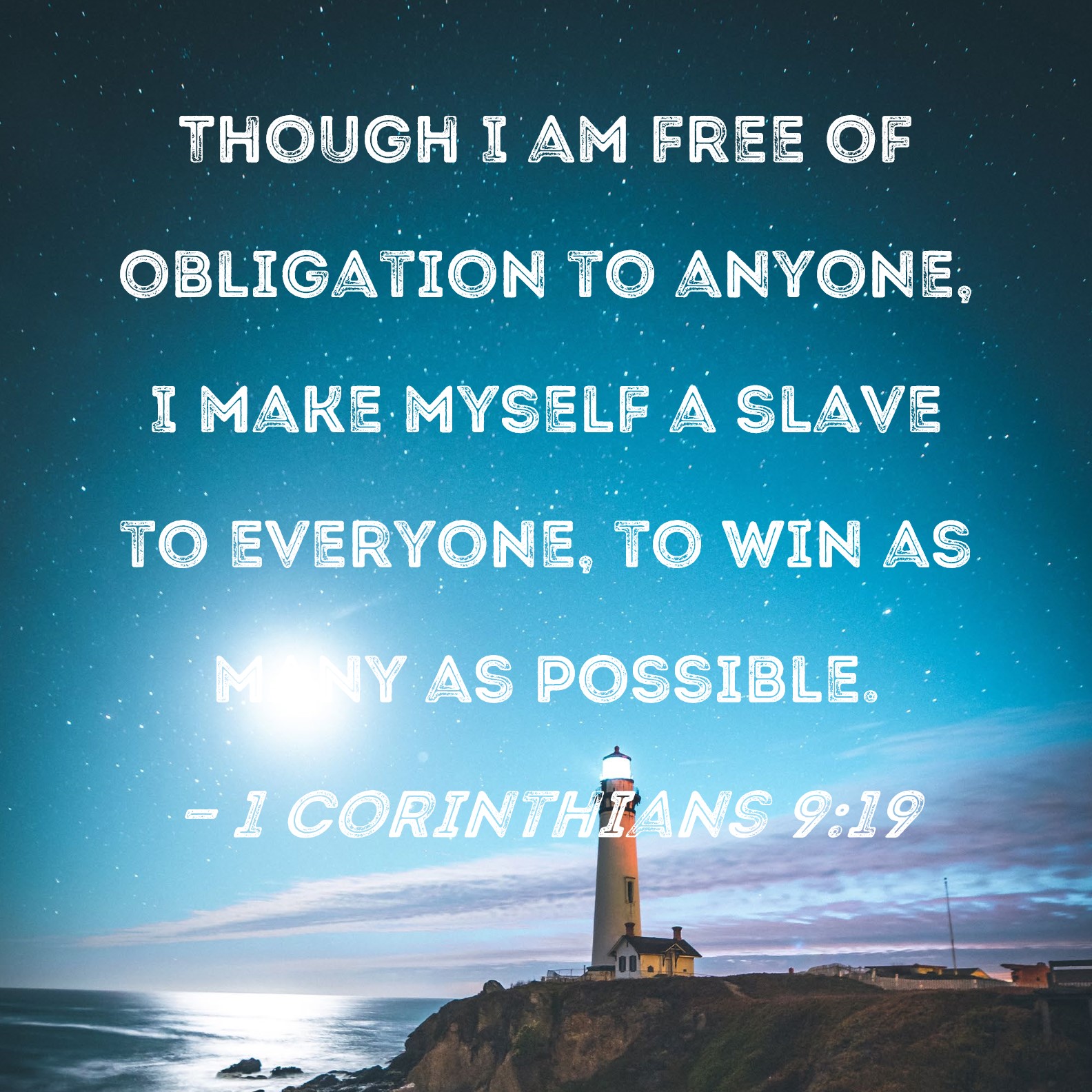 1 Corinthians 9:19 Though I am free of obligation to anyone, I make myself a slave to everyone, to win as many as possible.