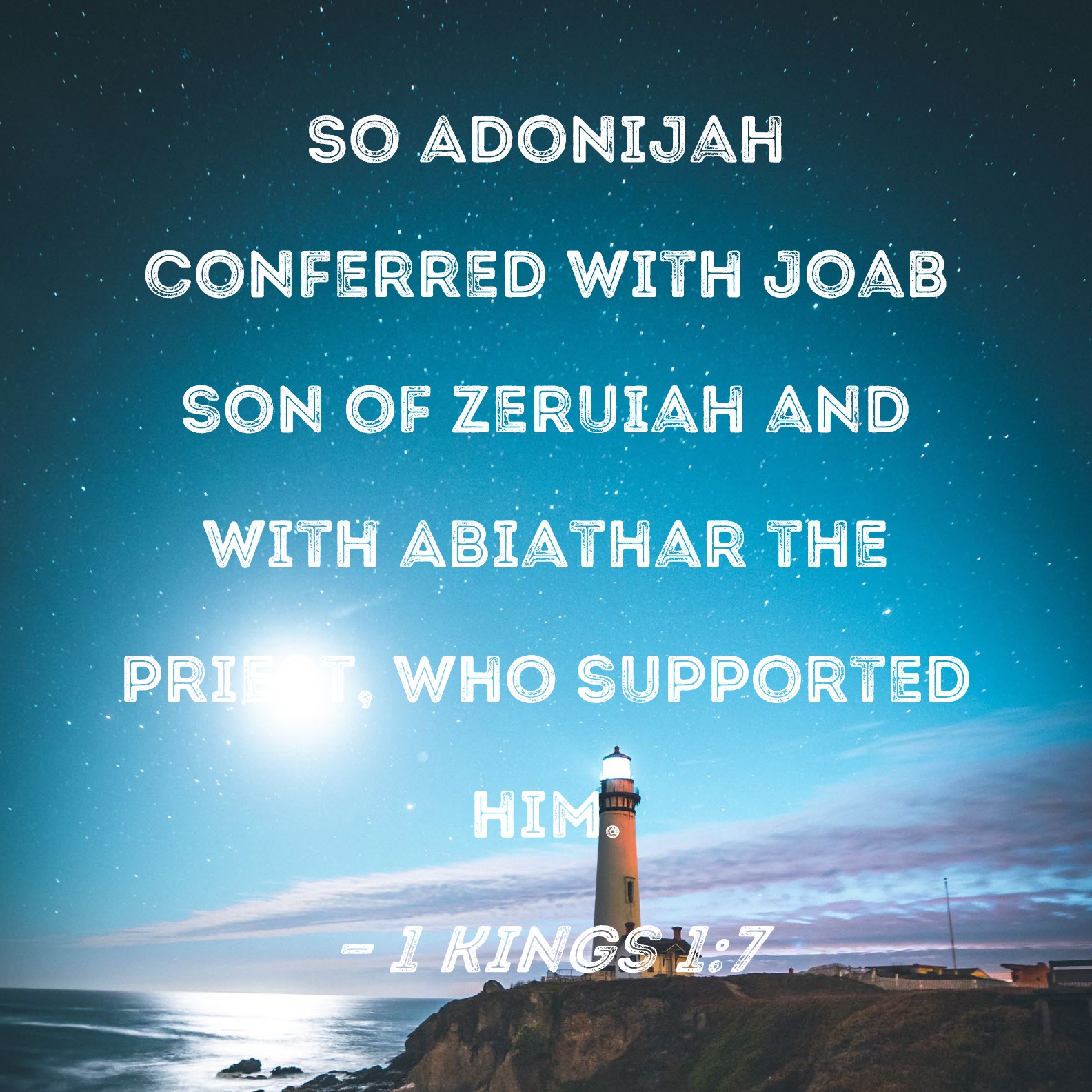1 Kings 1:7 So Adonijah conferred with Joab son of Zeruiah and with Abiathar the priest, who supported him.