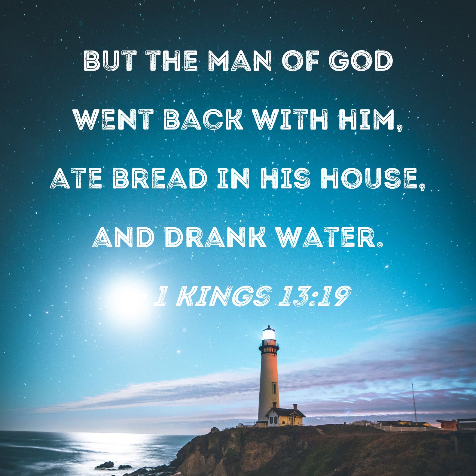 1 Kings 13:19 but the man of God went back with him, ate bread in his house, and drank water.