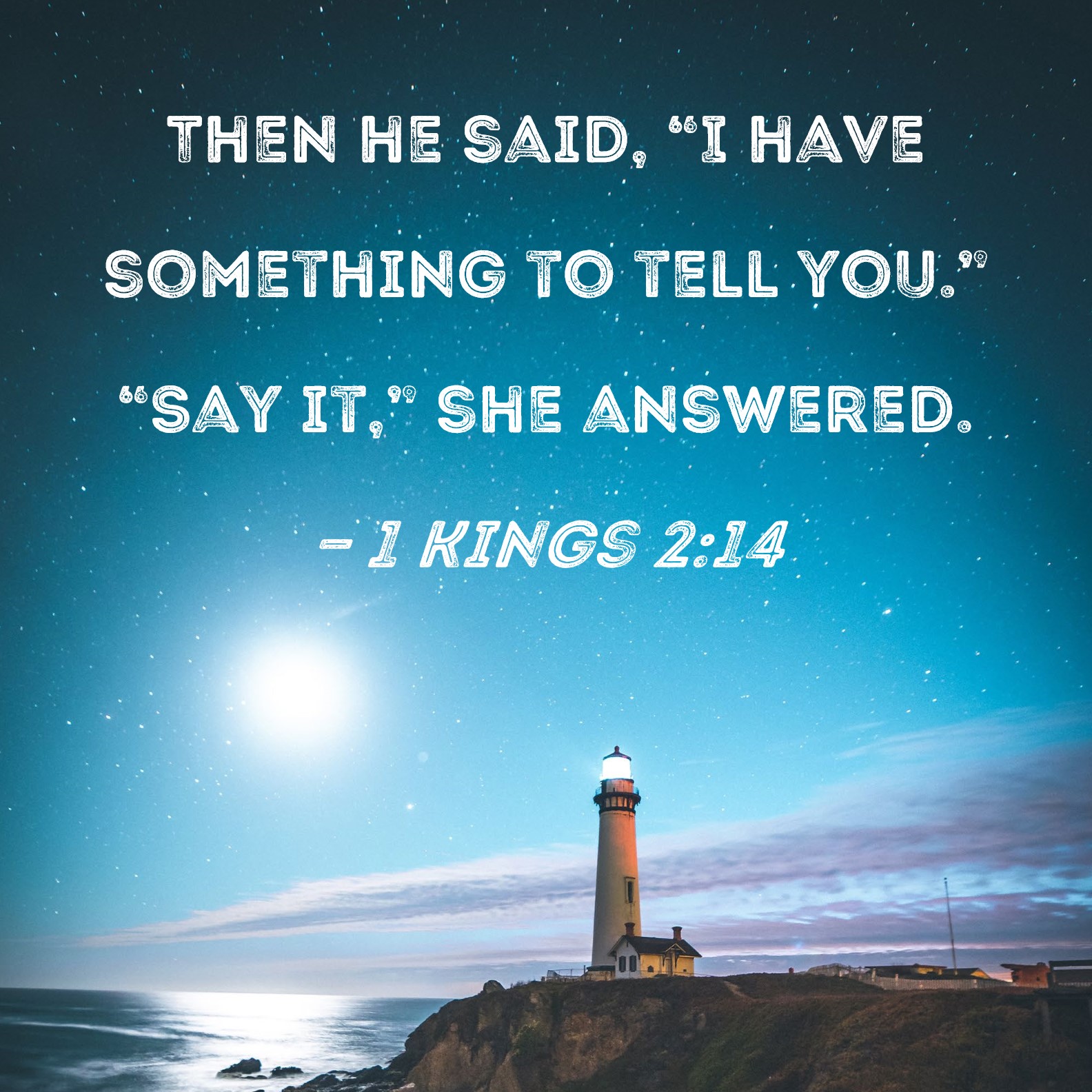 1 Kings 2:14 Then he said, "I have something to tell you." "Say it," she answered.