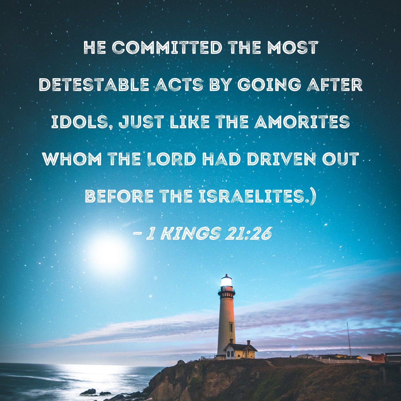 1 Kings 21:26 He committed the most detestable acts by going after idols, just like the Amorites whom the LORD had driven out before the Israelites.)