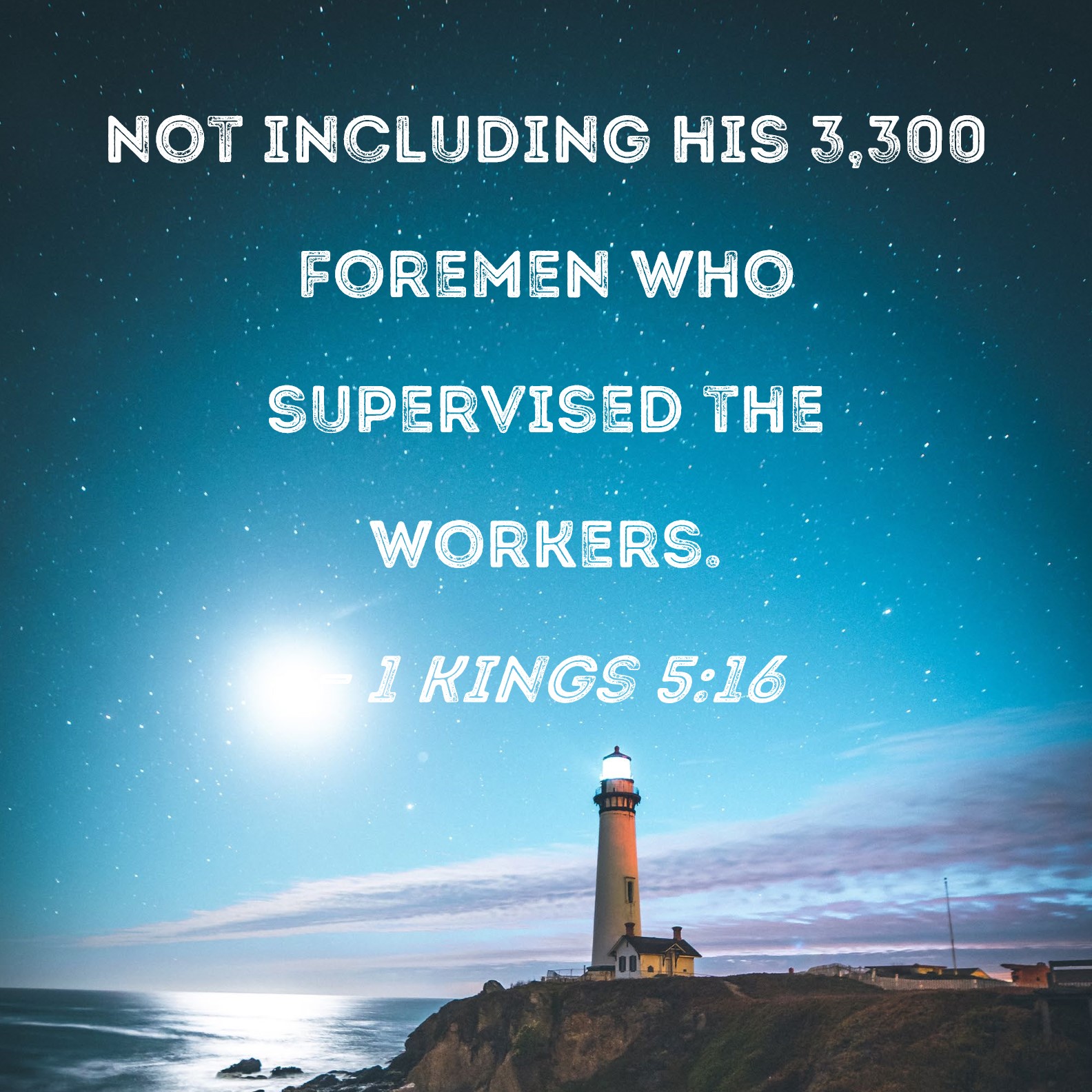 1 Kings 5:16 not including his 3,300 foremen who supervised the workers.