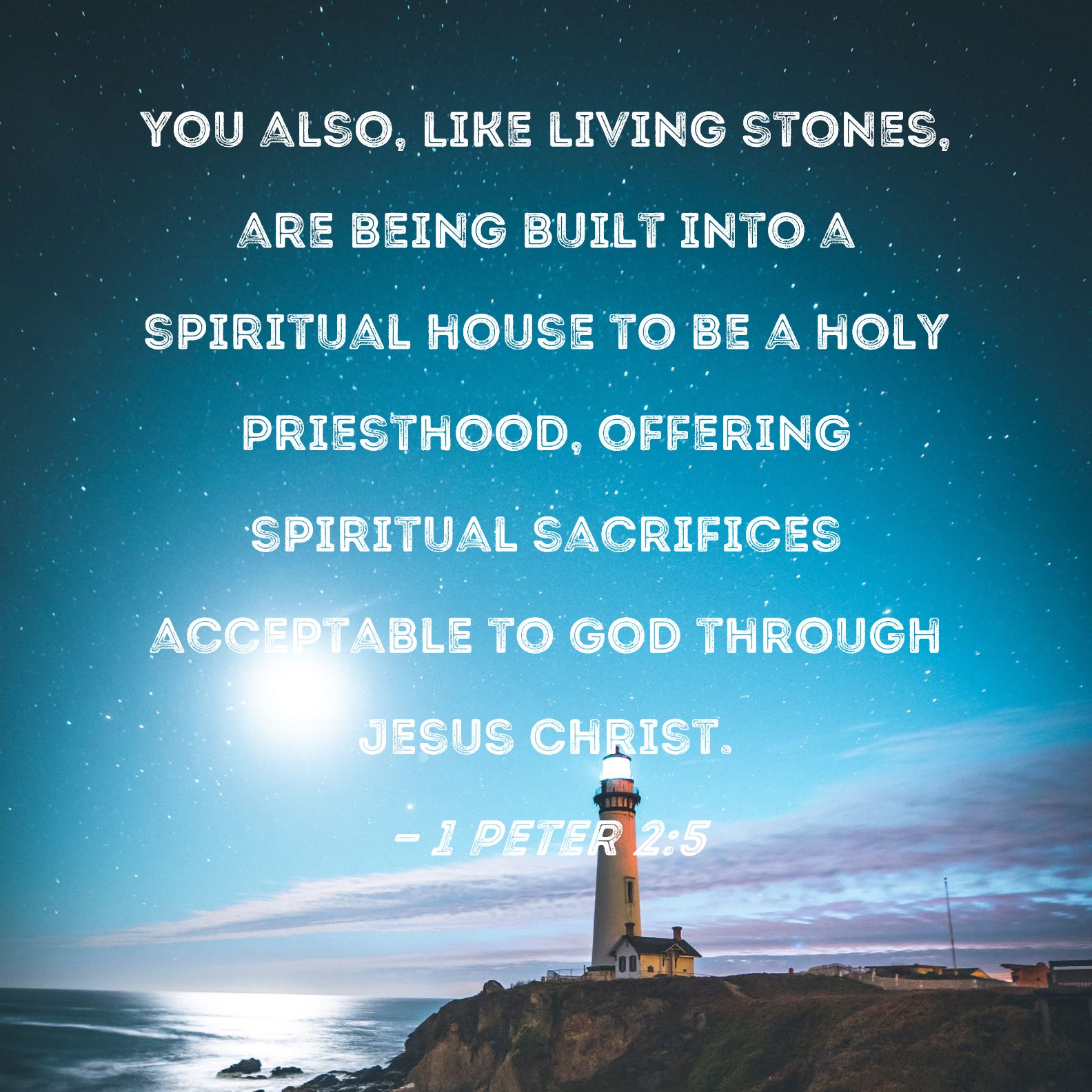 1 Peter 2:5 you also, like living stones, are being built into a spiritual house to be a holy priesthood, offering spiritual sacrifices acceptable to God through Jesus Christ.