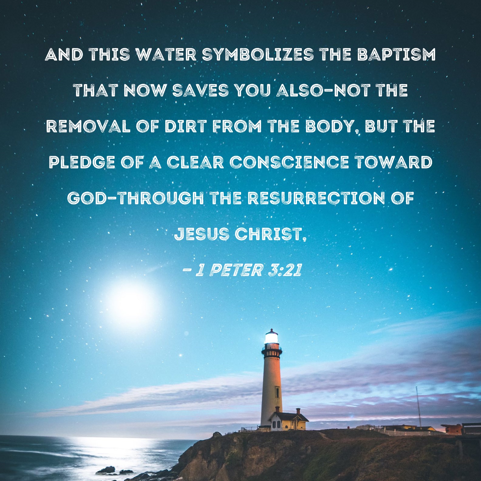1 Peter 3:21 And this water symbolizes the baptism that now saves you also--not the removal of dirt from the body, but the pledge of a clear conscience toward God--through the resurrection of Jesus Christ,