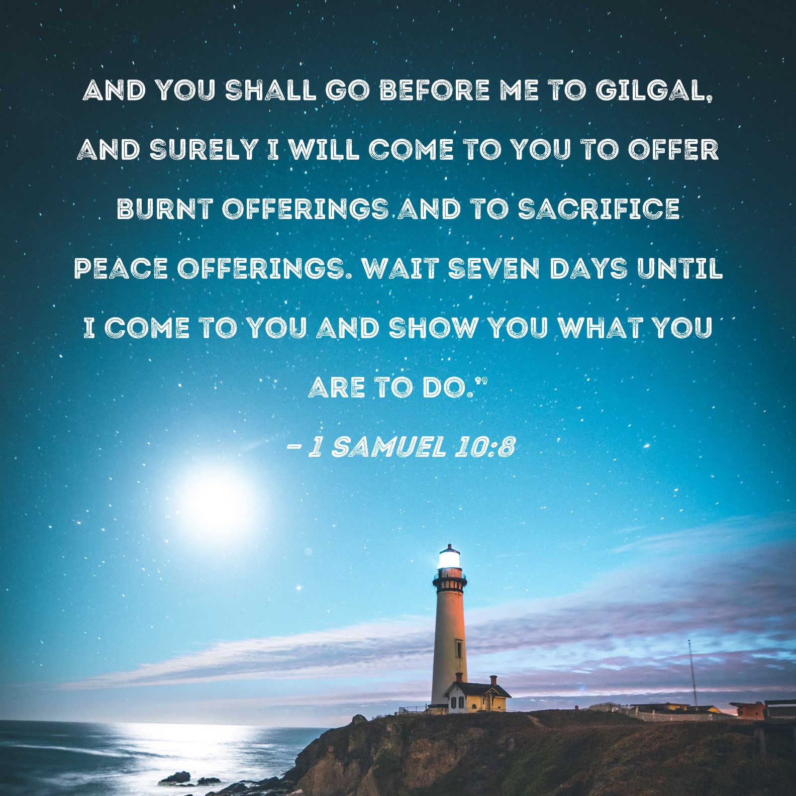 1 Samuel 10:8 And you shall go before me to Gilgal, and surely I will come to you to offer burnt offerings and to sacrifice peace offerings. Wait seven days until I come to you and show you what you are to do."