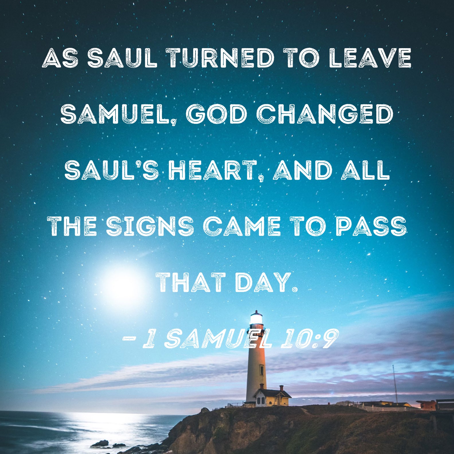 1 Samuel 10:9 As Saul turned to leave Samuel, God changed Saul's heart, and all the signs came to pass that day.