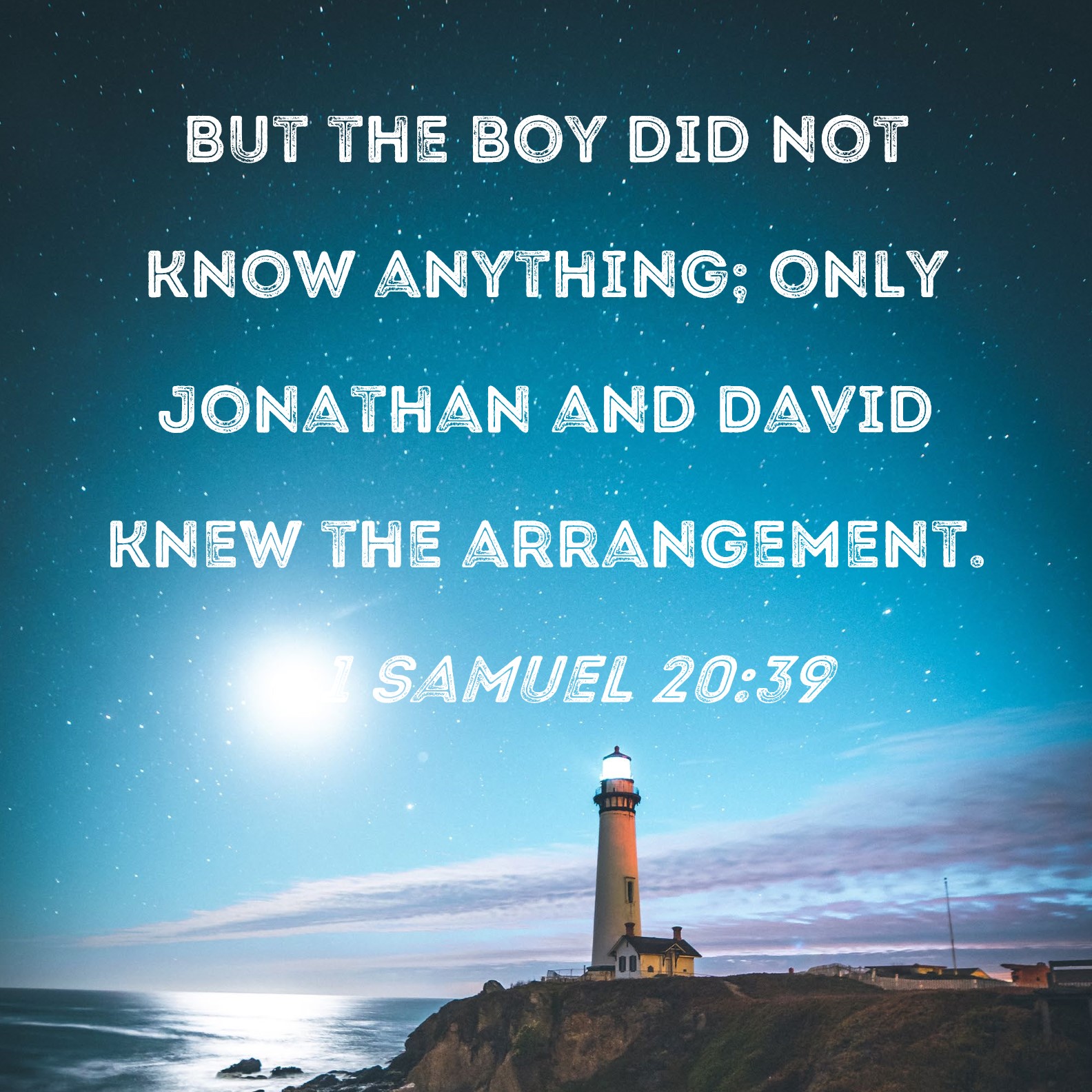 1 Samuel 20:39 But the boy did not know anything; only Jonathan and David knew the arrangement.