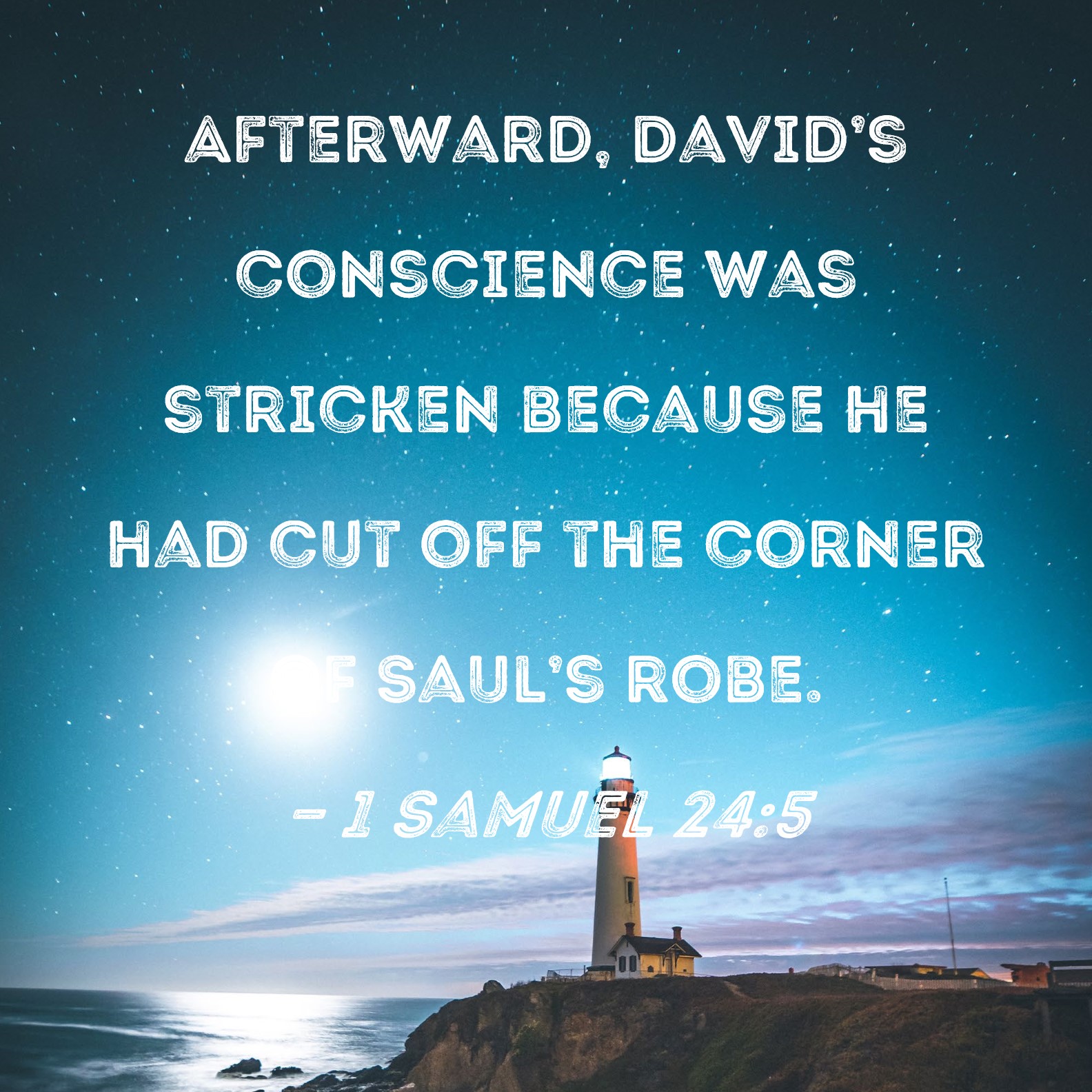 1 Samuel 24:5 Afterward, David's conscience was stricken because he had cut off the corner of Saul's robe.