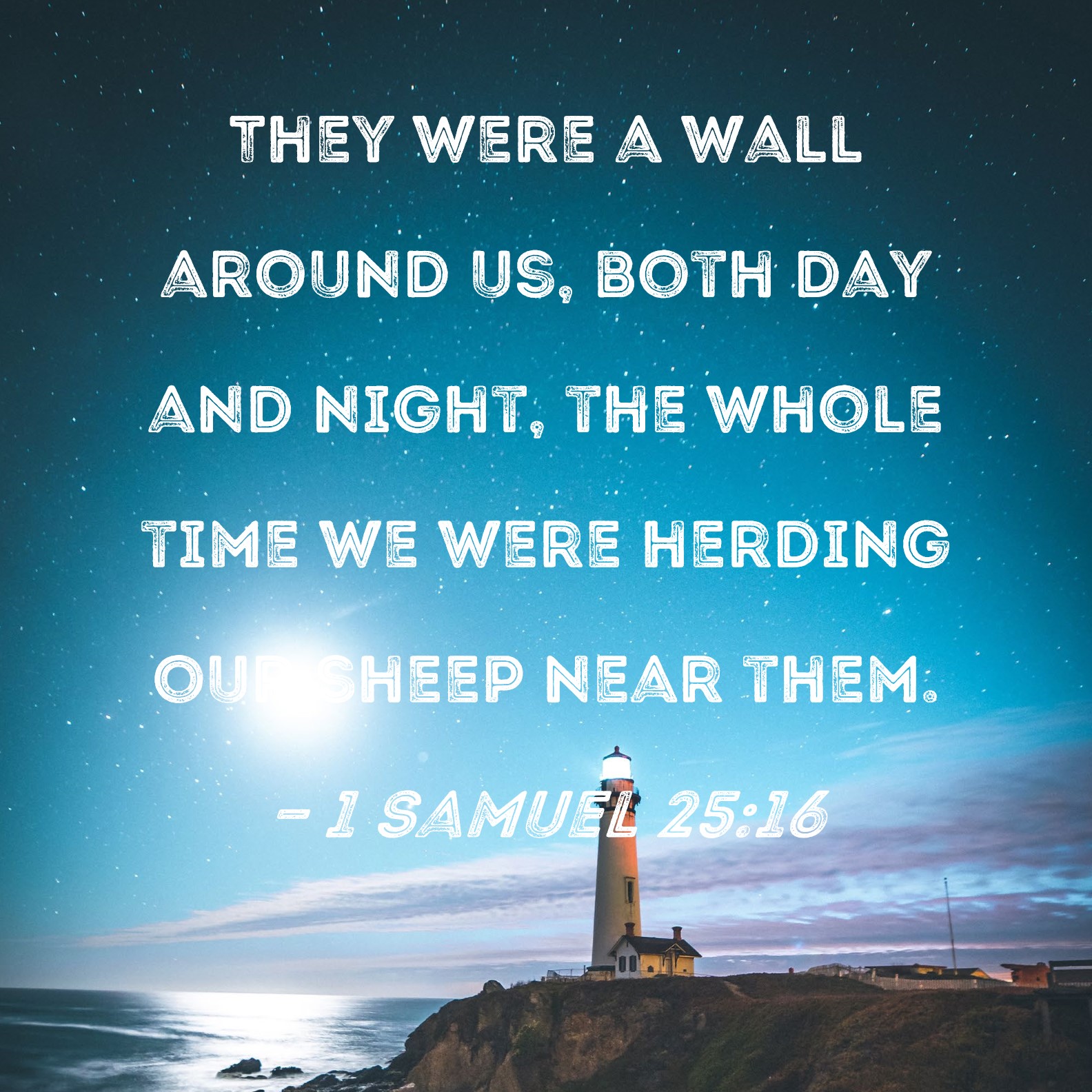 1 Samuel 25:16 They were a wall around us, both day and night, the whole time we were herding our sheep near them.