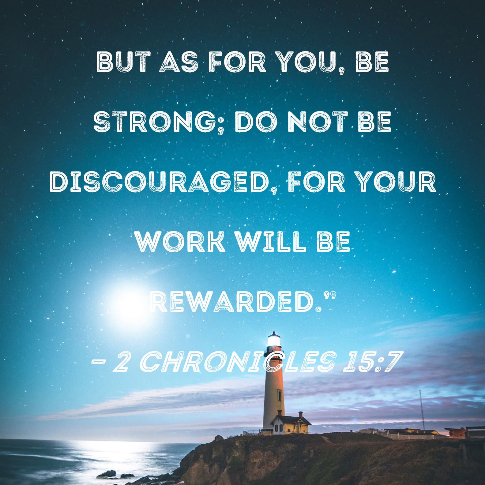2 Chronicles 15:7 But as for you, be strong; do not be discouraged, for your work will be rewarded."