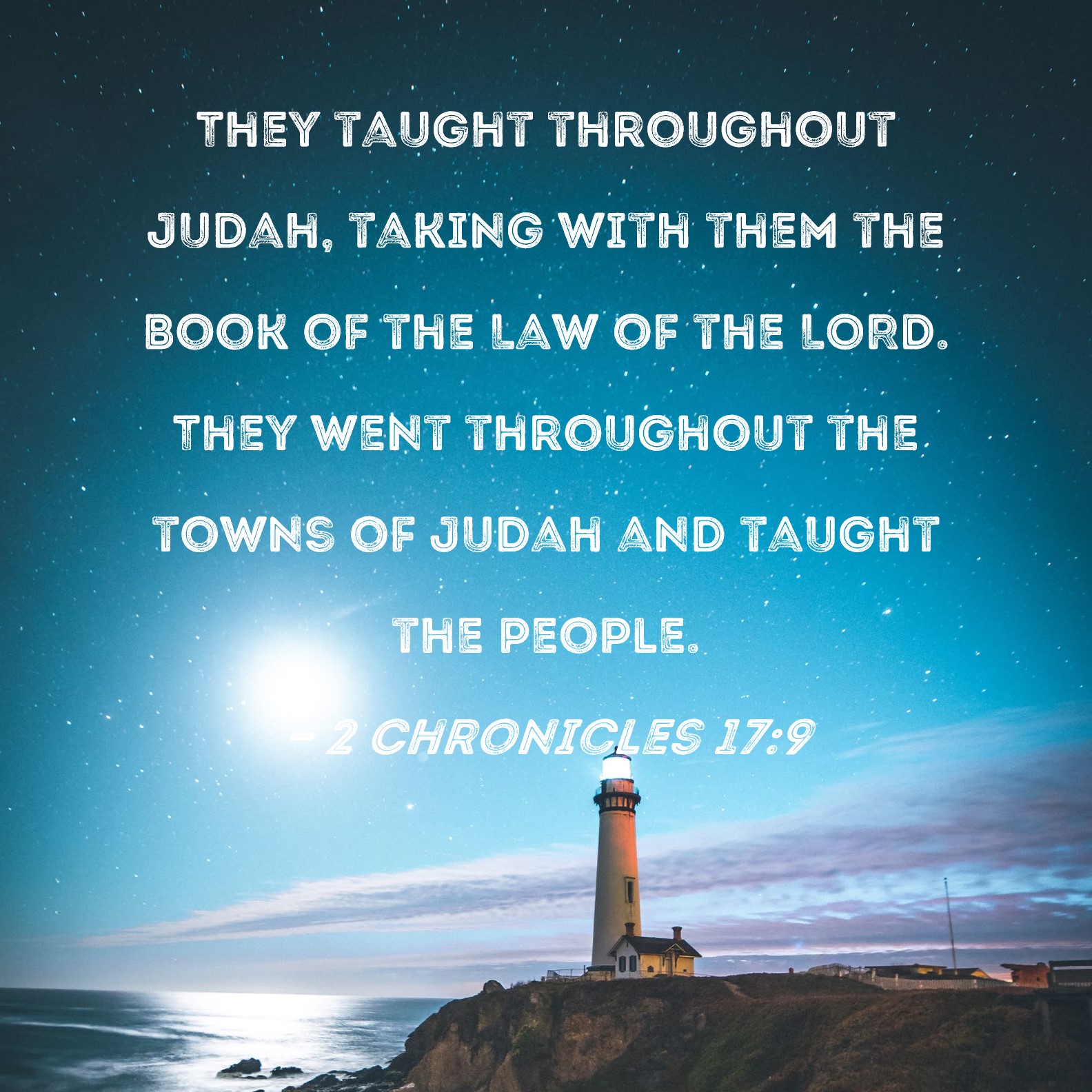 2 Chronicles 17:9 They taught throughout Judah, taking with them the Book of the Law of the LORD. They went throughout the towns of Judah and taught the people.