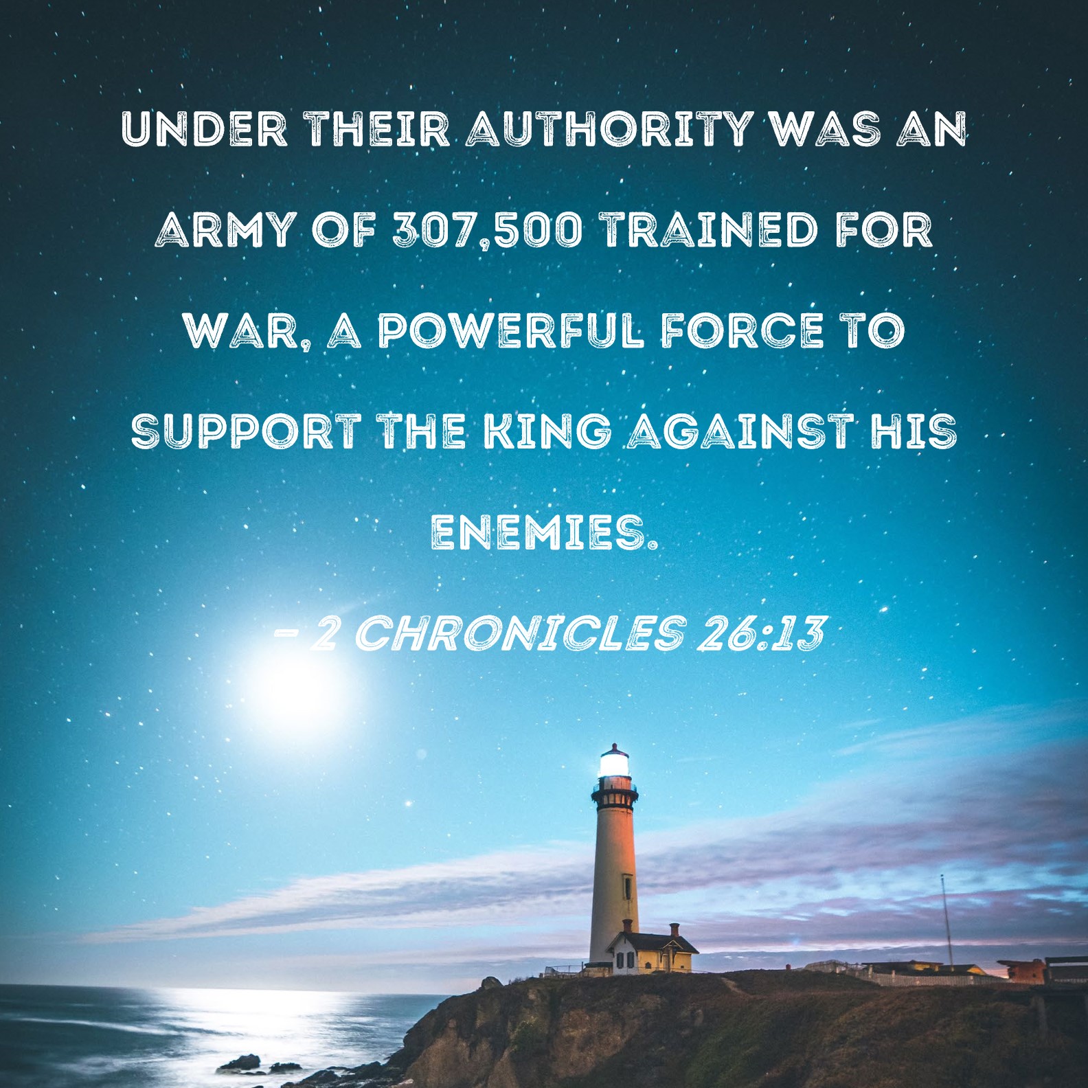 2 Chronicles 26:13 Under their authority was an army of 307,500 trained for war, a powerful force to support the king against his enemies.