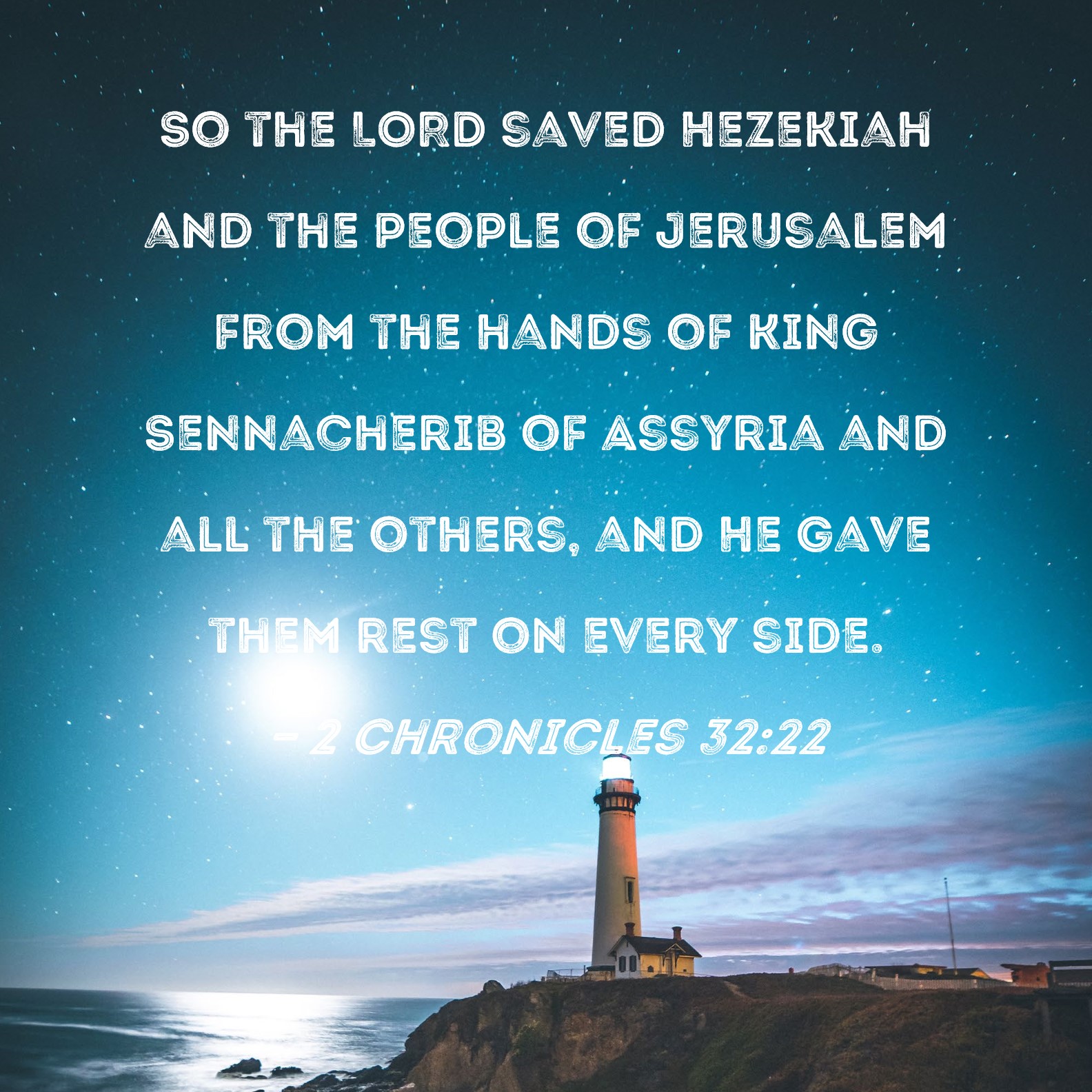 2 Chronicles 32:22 So the LORD saved Hezekiah and the people of Jerusalem from the hands of King Sennacherib of Assyria and all the others, and He gave them rest on every side.