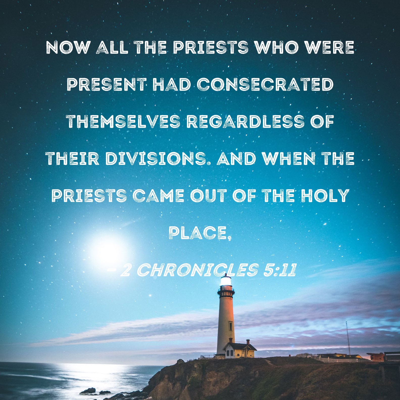 2 Chronicles 5:11 Now all the priests who were present had consecrated themselves regardless of their divisions. And when the priests came out of the Holy Place,
