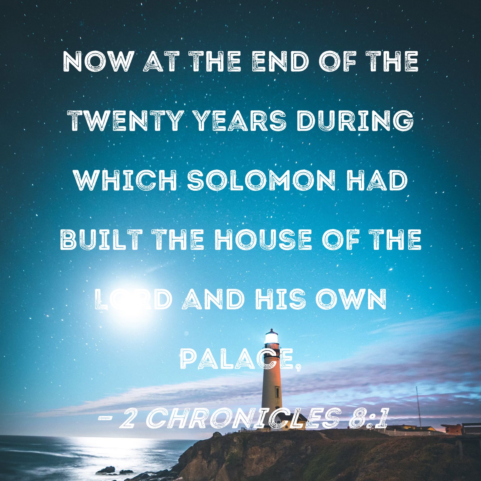2 Chronicles 8:1 Now at the end of the twenty years during which Solomon had built the house of the LORD and his own palace,