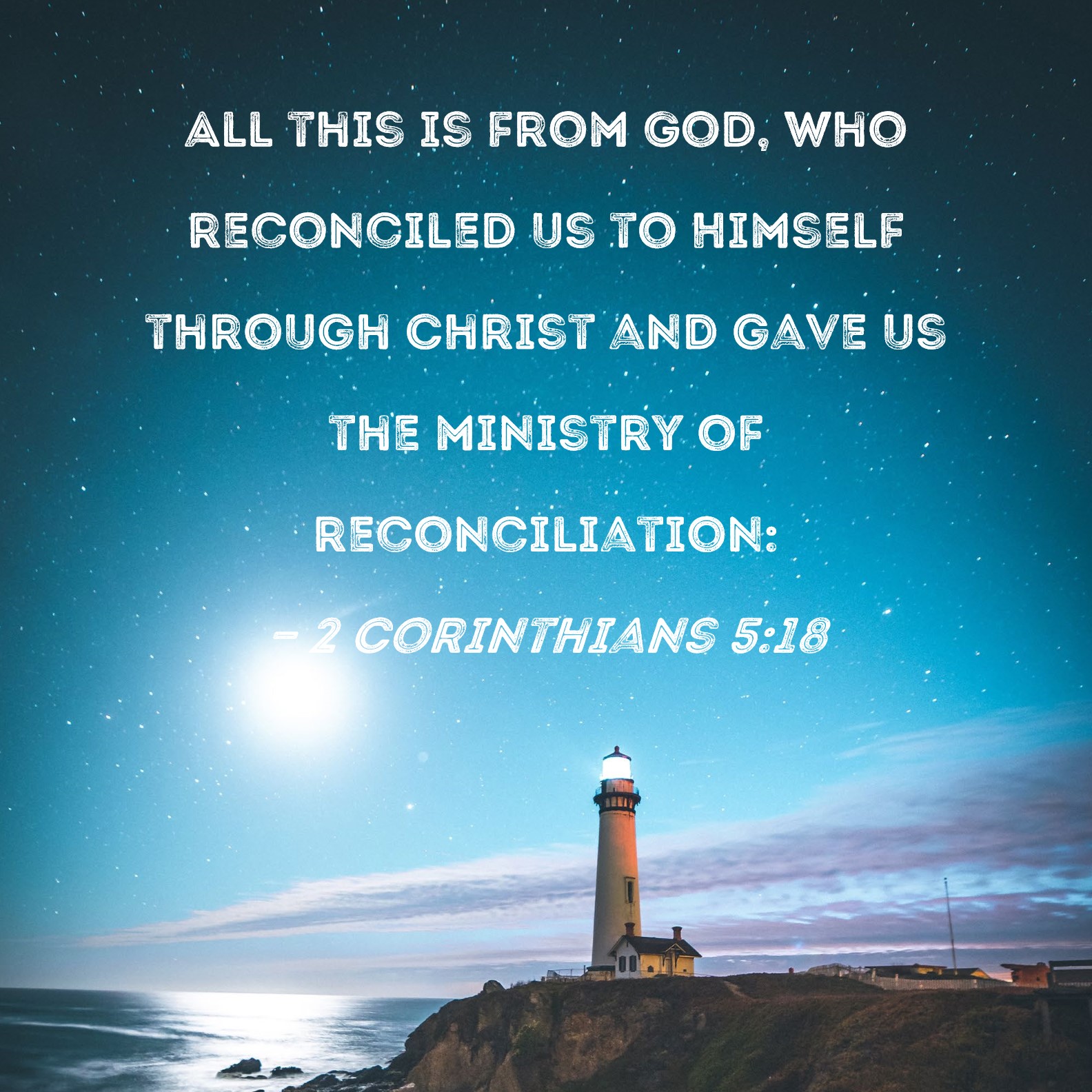 2 Corinthians 5:18 All this is from God, who reconciled us to Himself through Christ and gave us the ministry of reconciliation: