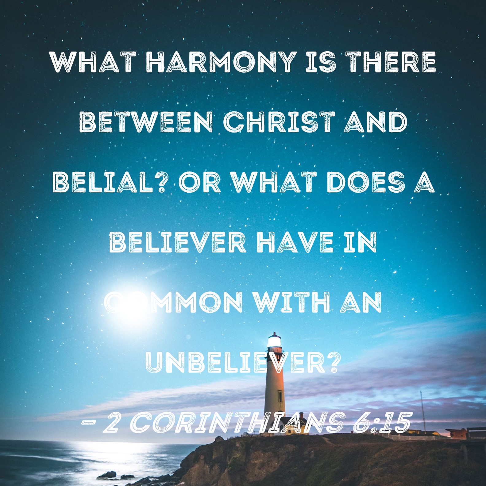 2 Corinthians 6:15 What harmony is there between Christ and Belial? Or what does a believer have in common with an unbeliever?