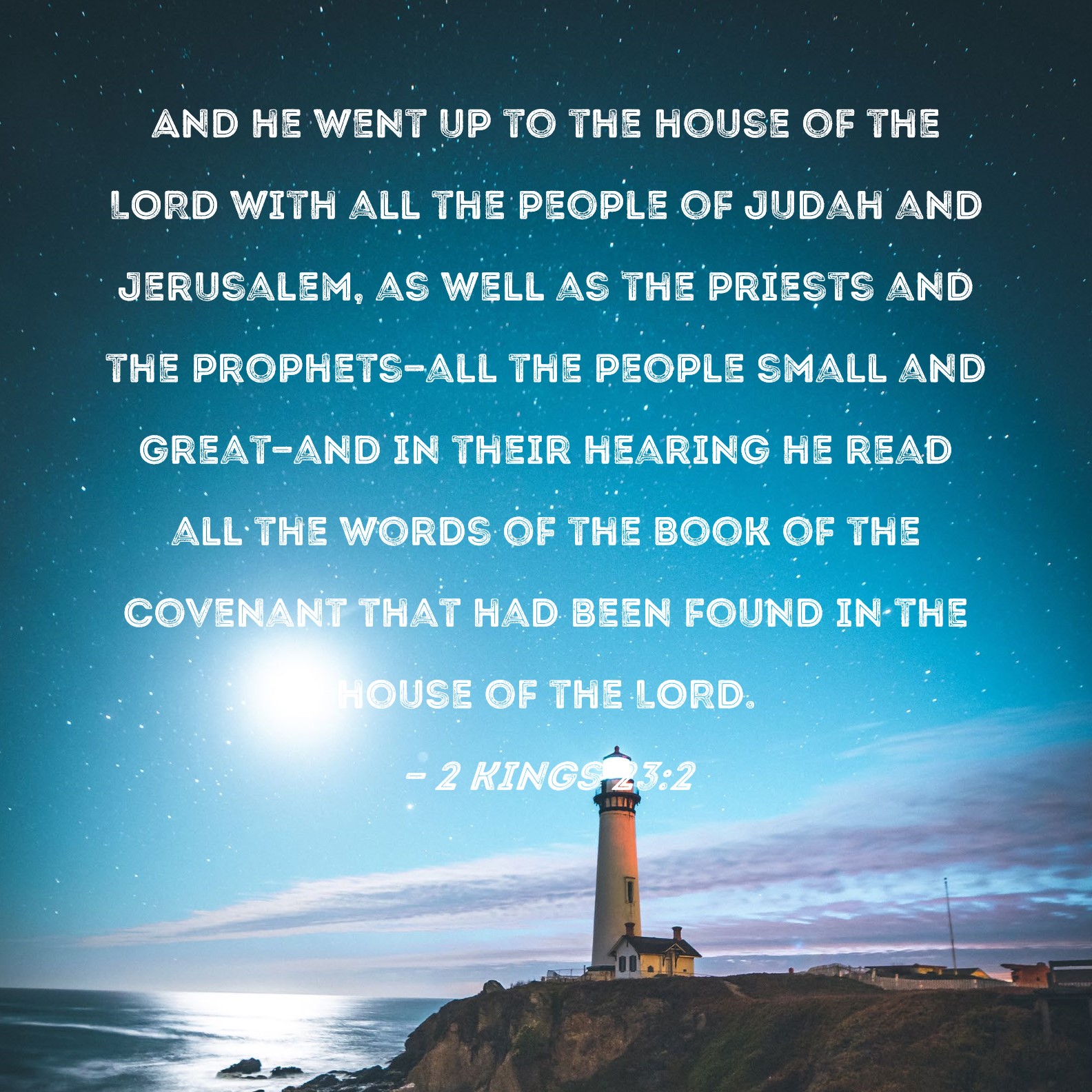 2 Kings 23:2 And he went up to the house of the LORD with all the people of Judah and Jerusalem, as well as the priests and the prophets--all the people small and great--and in their hearing he read all the words of the Book of the Covenant that had been found in the house of the LORD.