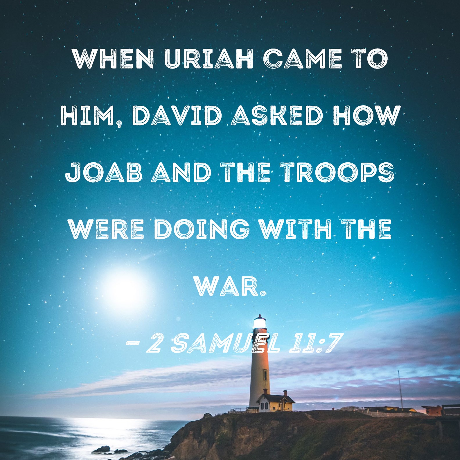 2 Samuel 11:7 When Uriah came to him, David asked how Joab and the troops were doing with the war.