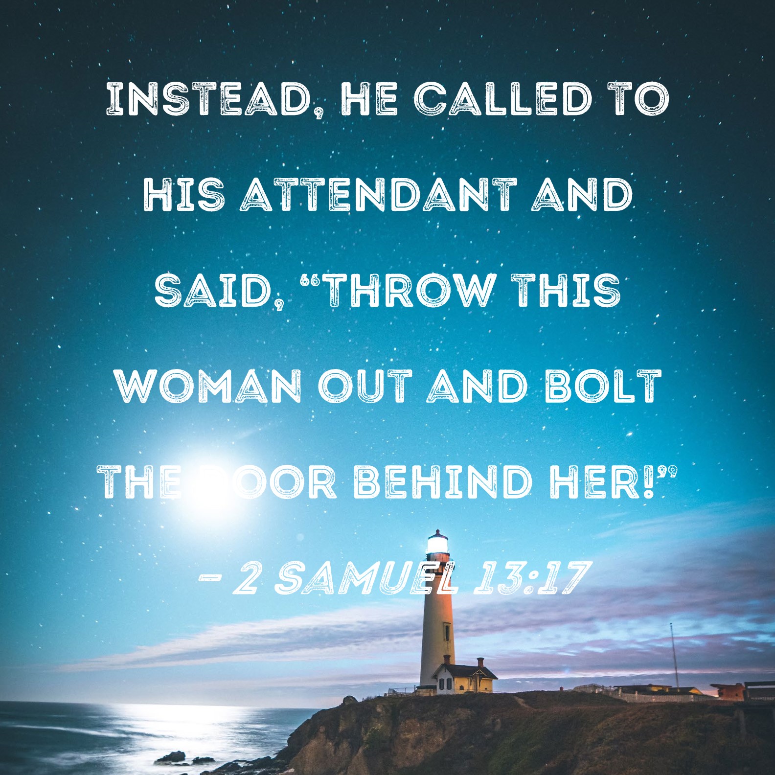 2 Samuel 13:17 Instead, he called to his attendant and said, "Throw this woman out and bolt the door behind her!"