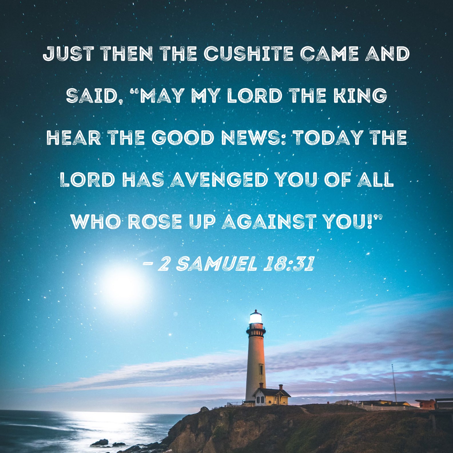 2 Samuel 18:31 Just then the Cushite came and said, "May my lord the king hear the good news: Today the LORD has avenged you of all who rose up against you!"