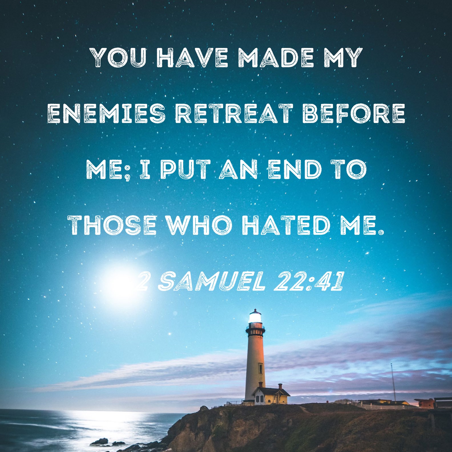2 Samuel 22:41 You have made my enemies retreat before me; I put an end to those who hated me.