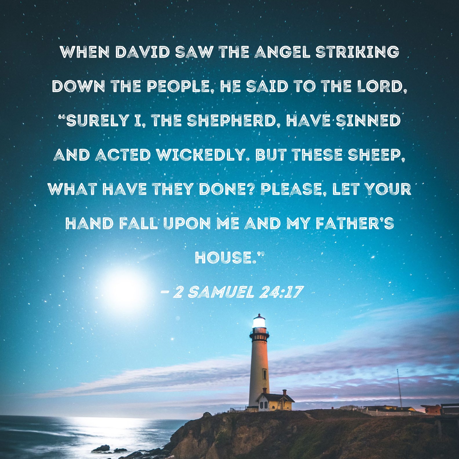 2 Samuel 24:17 When David saw the angel striking down the people, he said to the LORD, "Surely I, the shepherd, have sinned and acted wickedly. But these sheep, what have they done? Please, let Your hand fall upon me and my father's house."