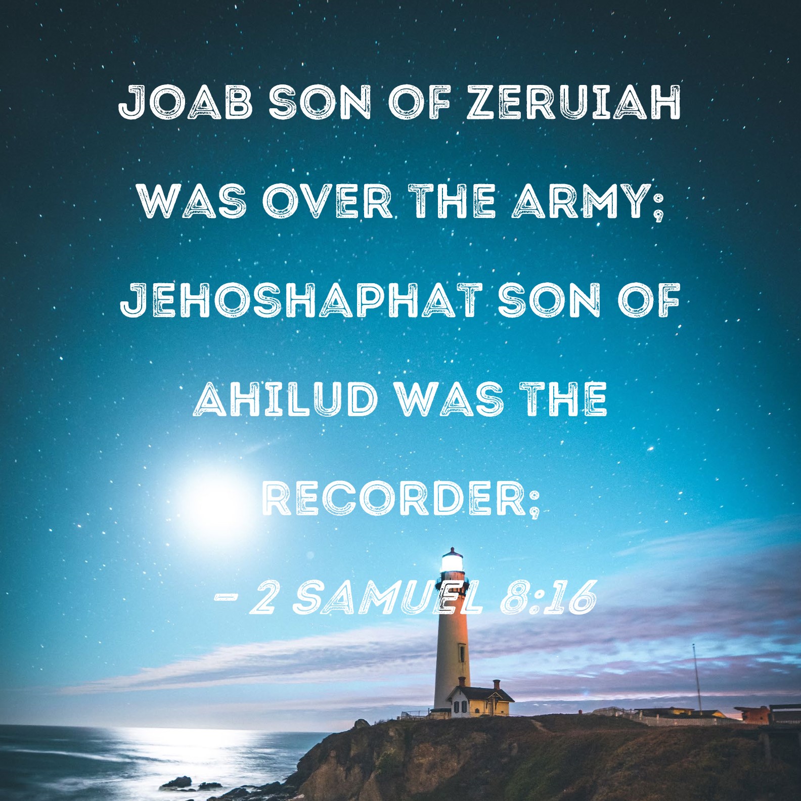 2 Samuel 8:16 Joab son of Zeruiah was over the army; Jehoshaphat son of Ahilud was the recorder;